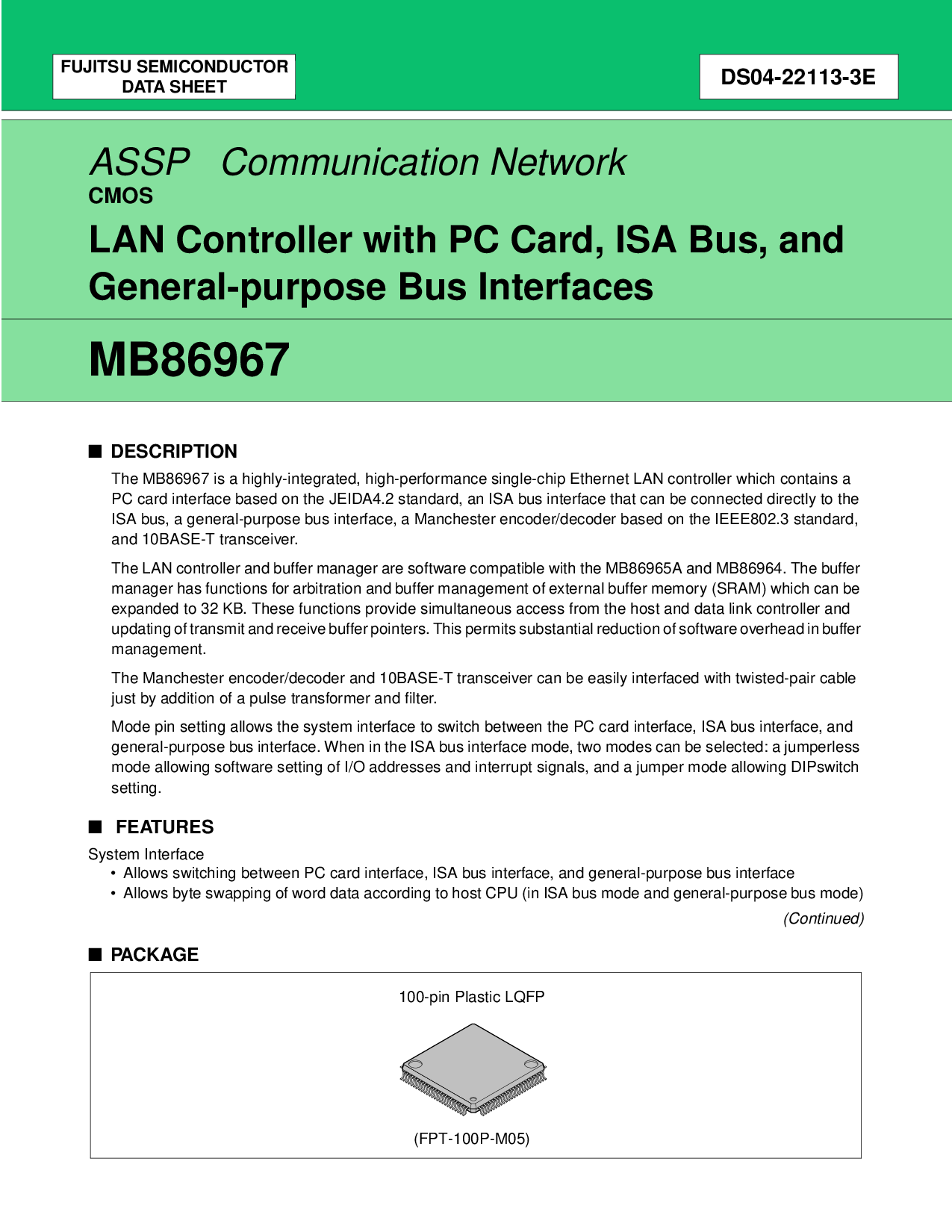 这 mb86967 是 一个 高度-综合, 高性能 单芯片 以太网 局域网 控制器 哪个 包含 一个