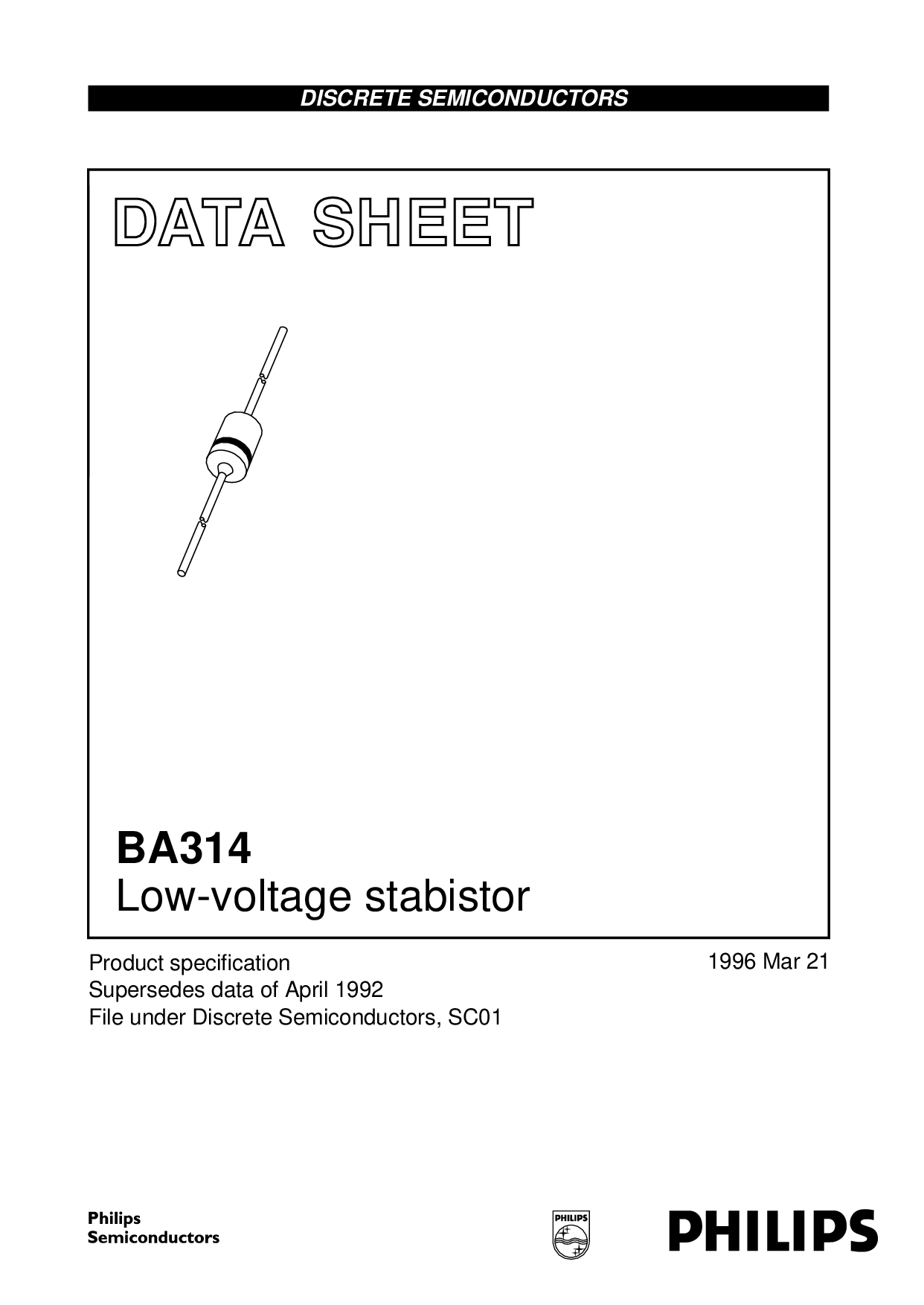 dat一个shEET 产品 Speci 取代 数据 的 april 1992 文件 下 离散 半导体, sc01 1996 3月 21 离散 半导体 BA314 低电压 stabistor M3D176 | |