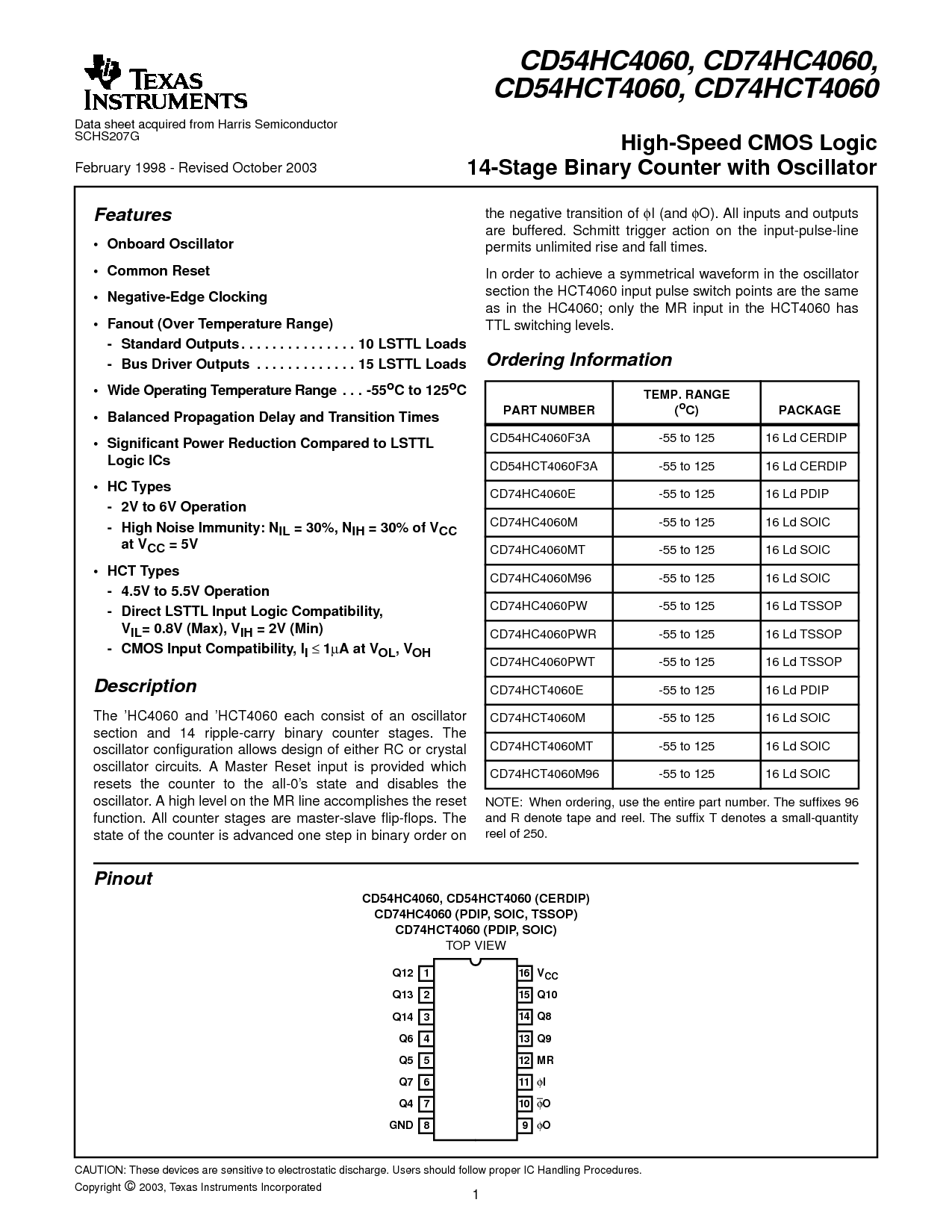 CD54HCT4060F3A -55 至 125 16 ld cerdip