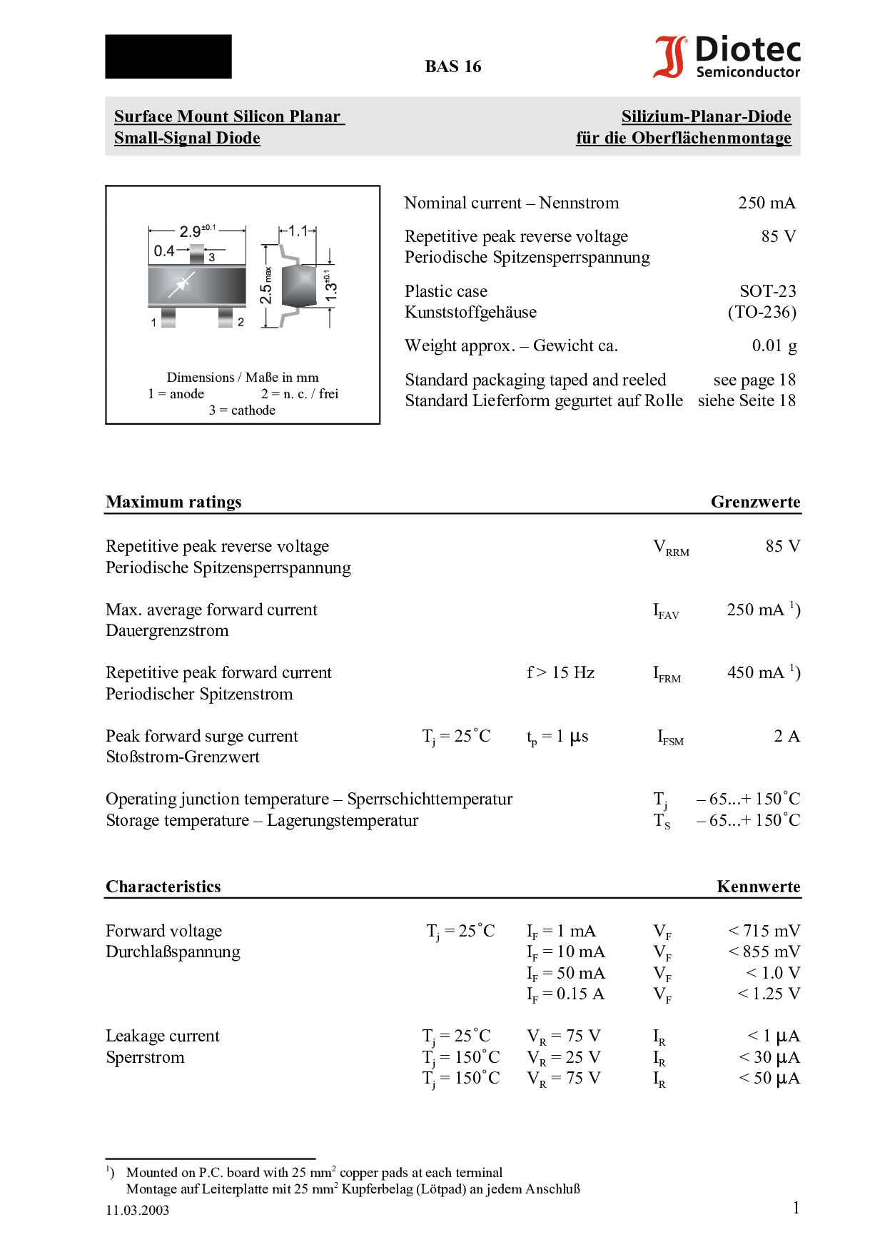 浏览型号BAS16的Datasheet PDF文件第2页
