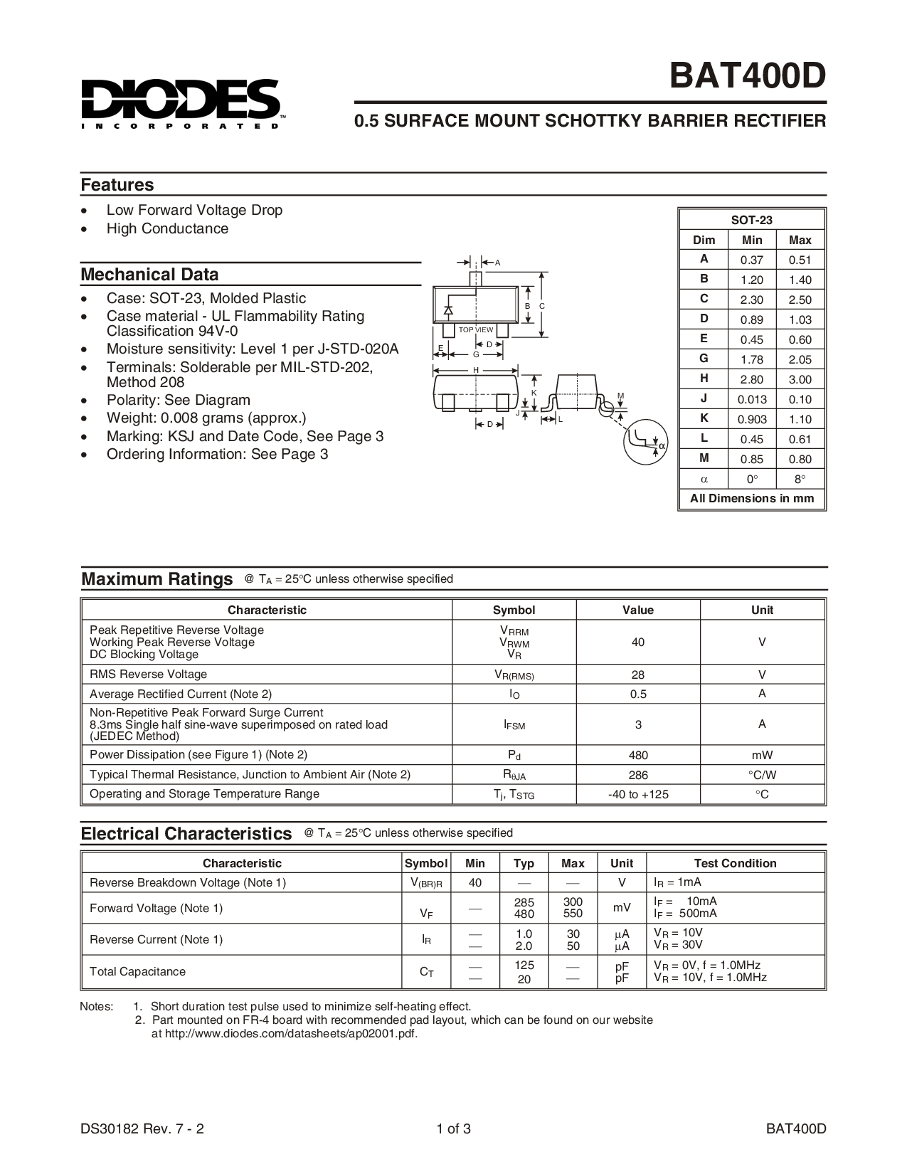 浏览型号BAT400D的Datasheet PDF文件第3页