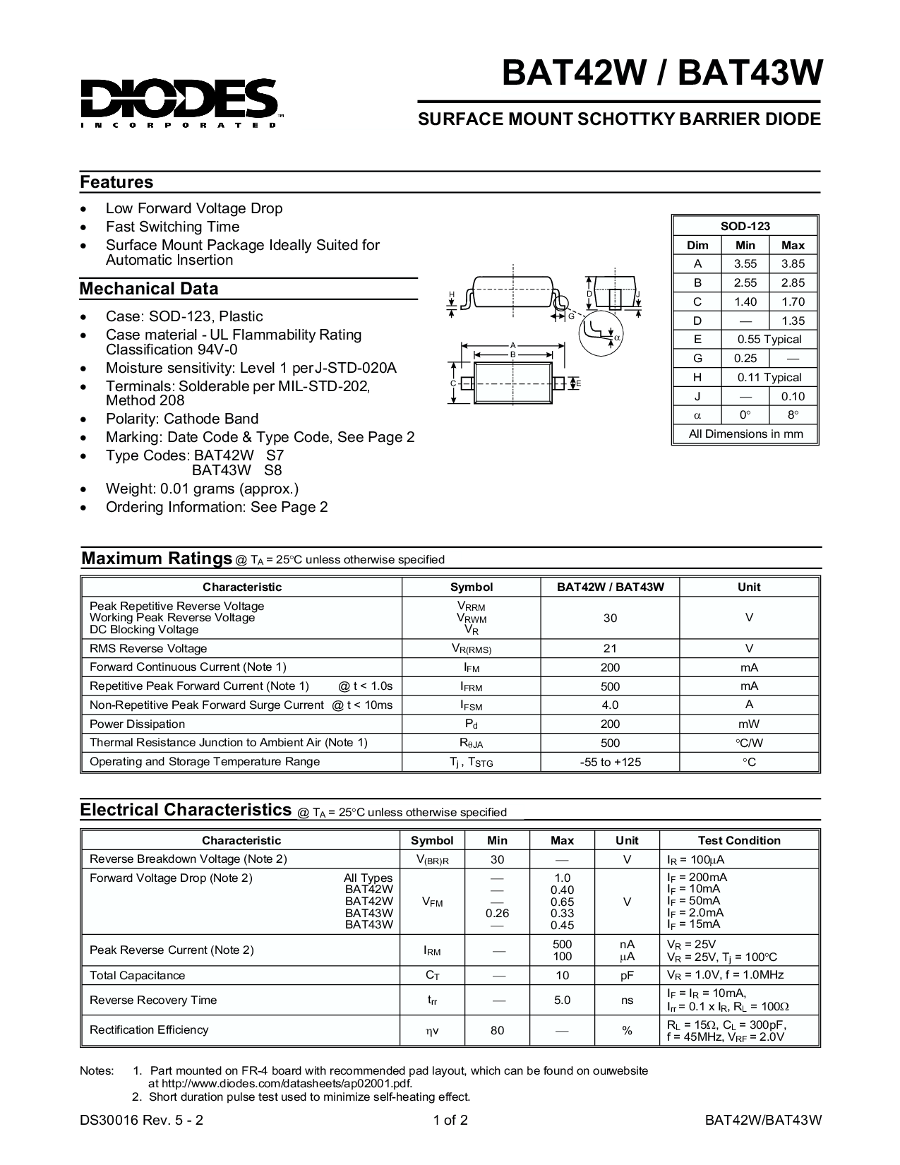 ds30016 rev. 5 - 2 1 的 2 bat42w/bat43w
