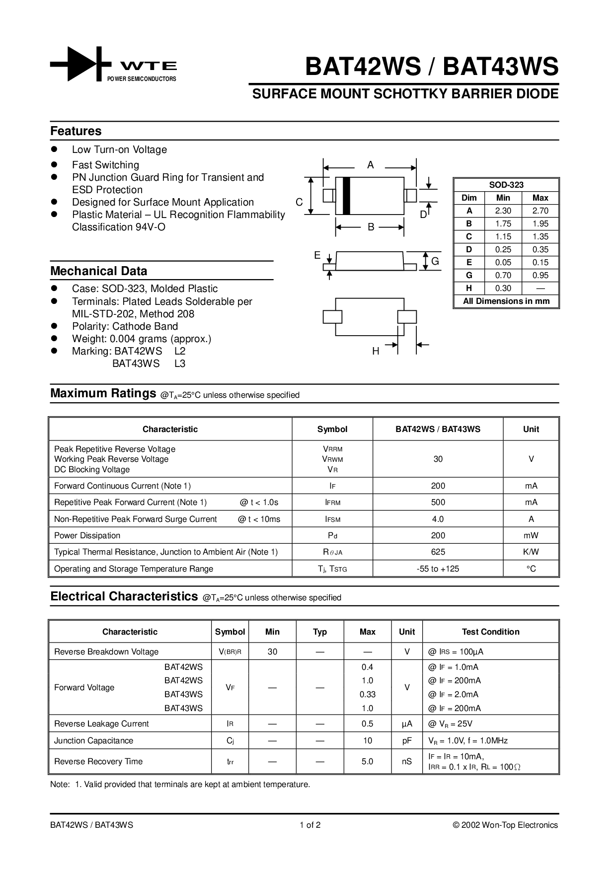 bat42ws / bat43ws 1 的 2 © 2002 韩元-顶部 电子产品