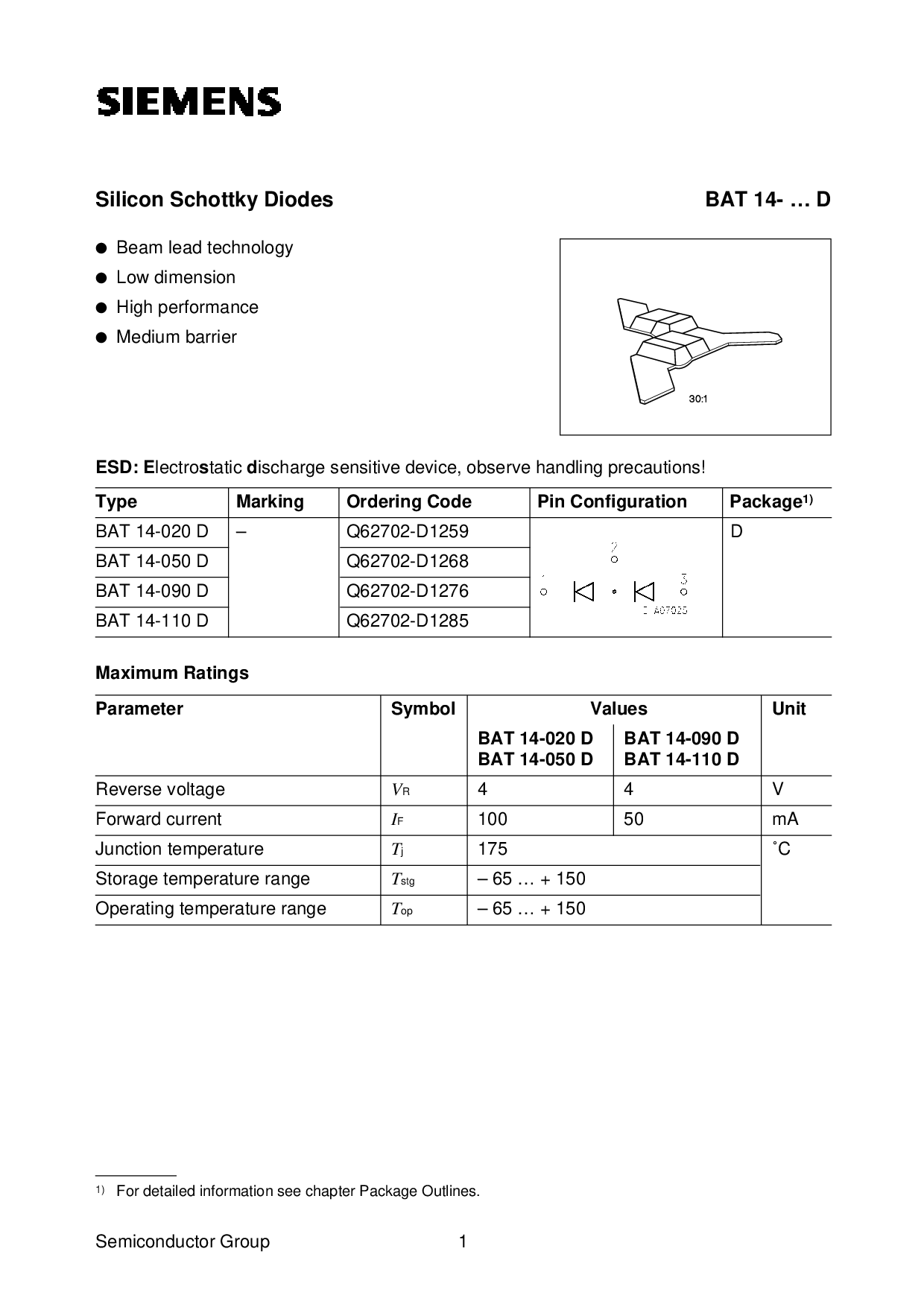 硅 肖特基 二极管 蝙蝠 14- … d