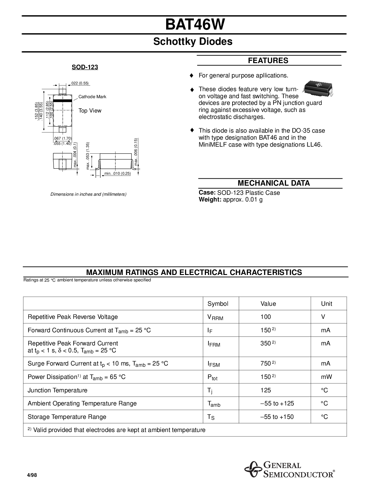 浏览型号BAT46W的Datasheet PDF文件第2页
