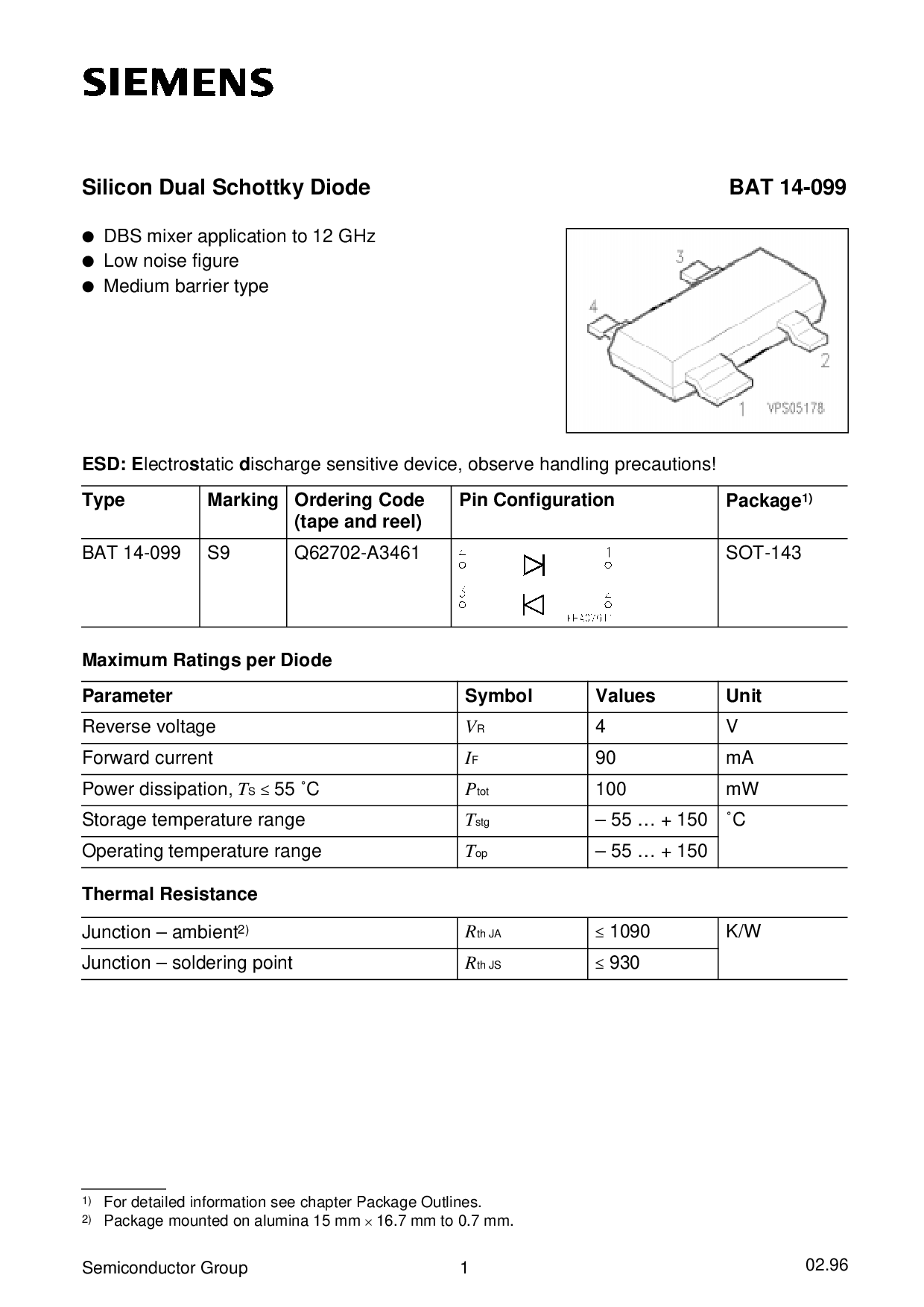 蝙蝠 14-099 q62702-a3461s9 sot-143