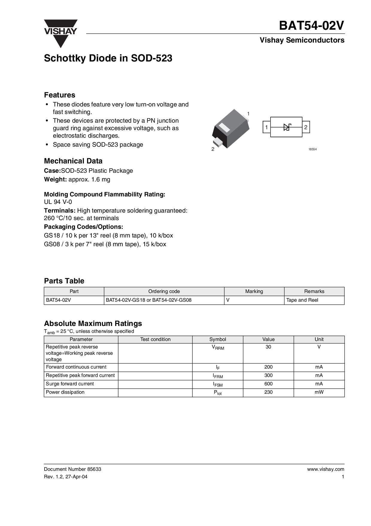 浏览型号BAT54-02V-GS08的Datasheet PDF文件第2页