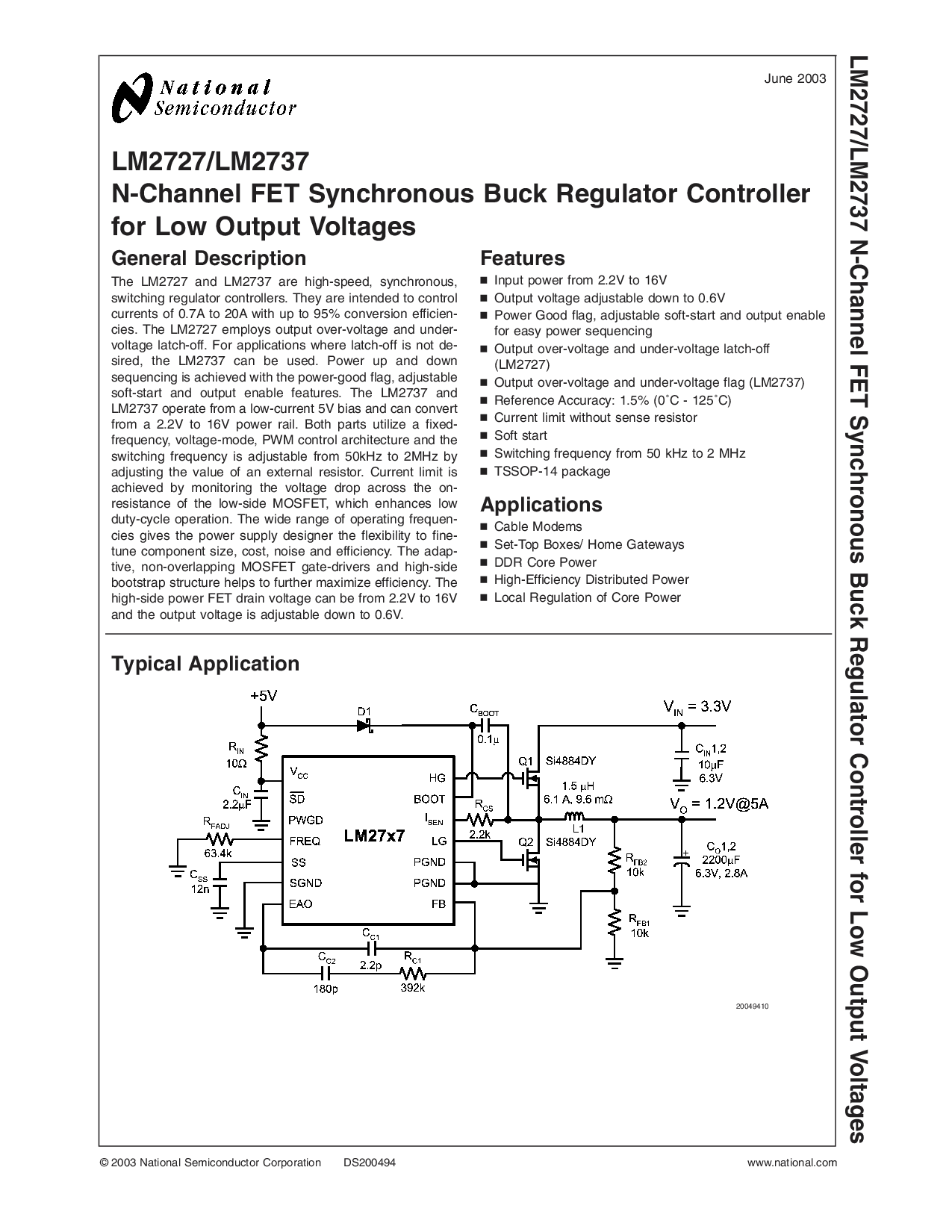lm2727/lm2737 n通道 场效应晶体管 同步 降压 调节器 控制器 用于 低 输出 电压