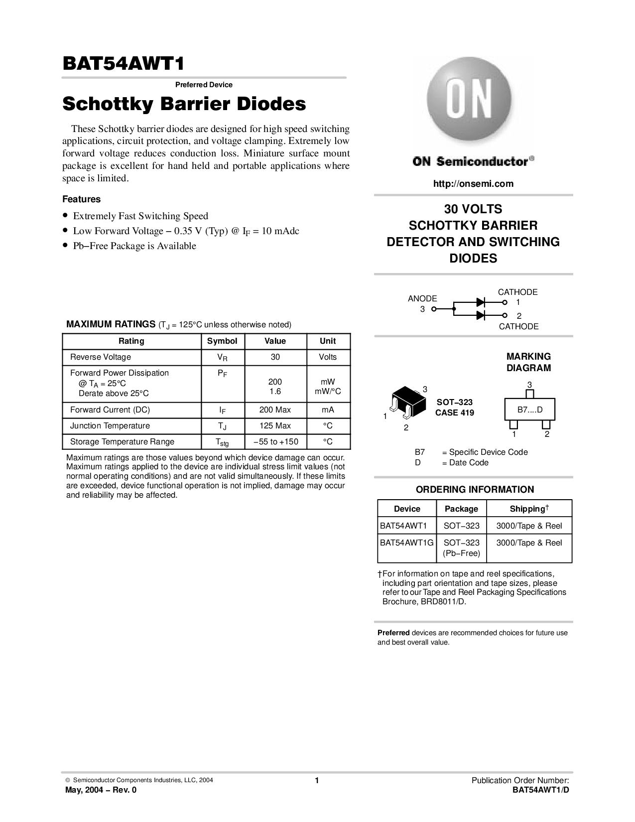 浏览型号BAT54AWT1G的Datasheet PDF文件第4页