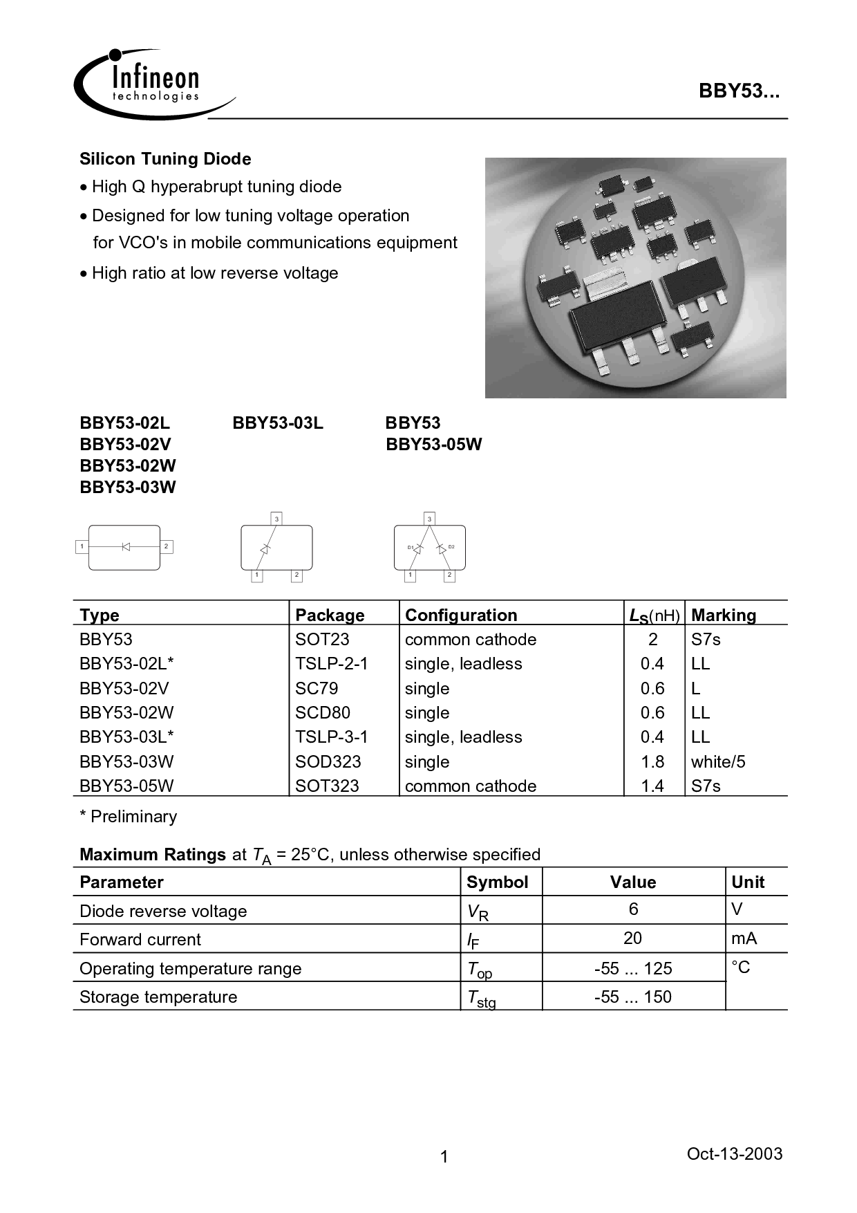 Silicon Tuning Diode (High Q hyperabrupt tuning diode Designed for low tuning voltage operation)