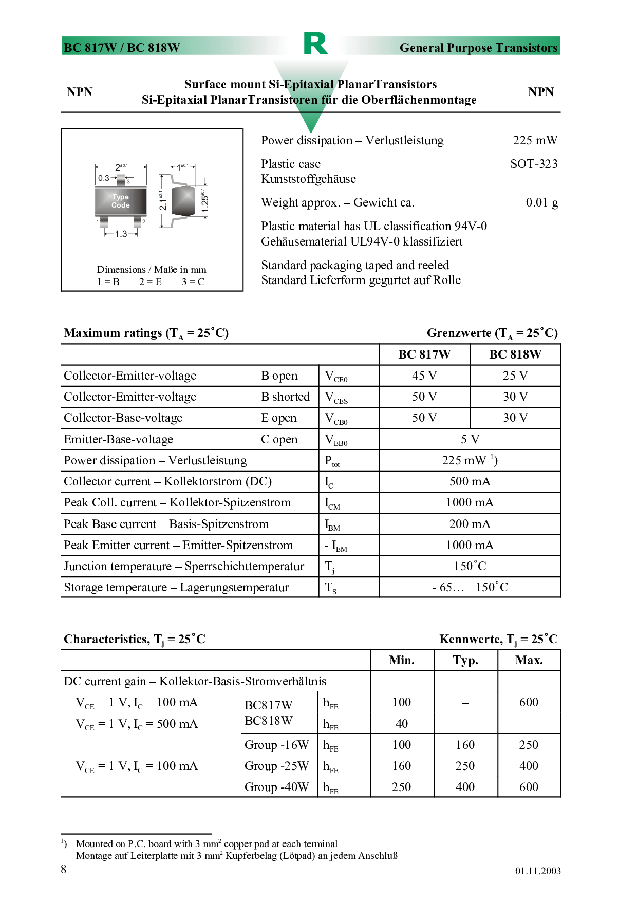 浏览型号BC818W的Datasheet PDF文件第2页