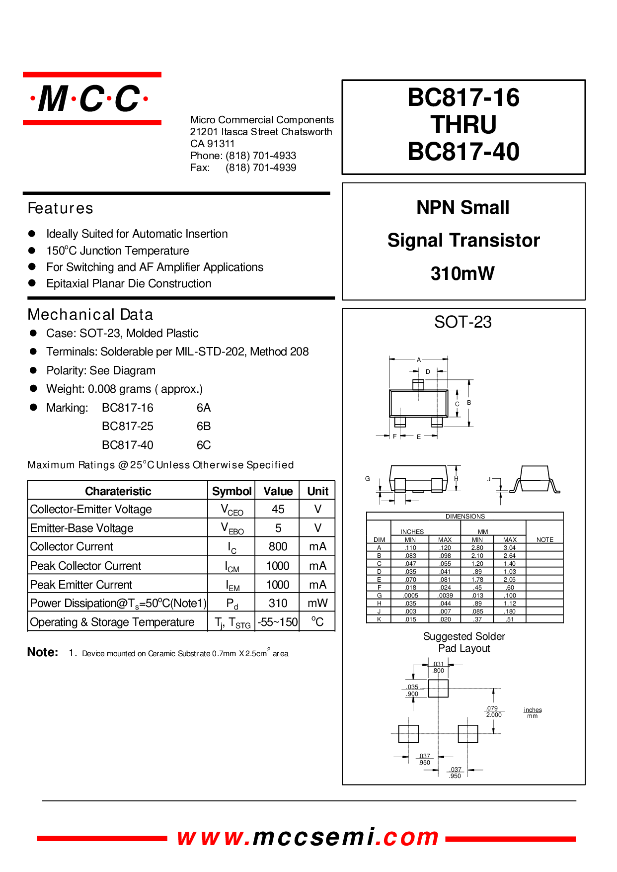 浏览型号BC817-16的Datasheet PDF文件第2页