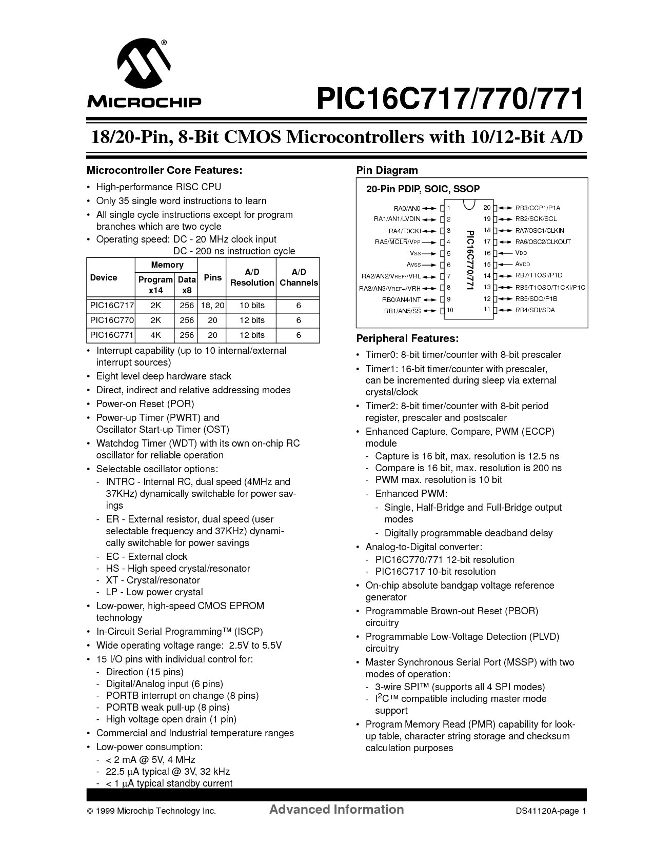 PIC16C717 2K 256 18, 20 10 比特 6