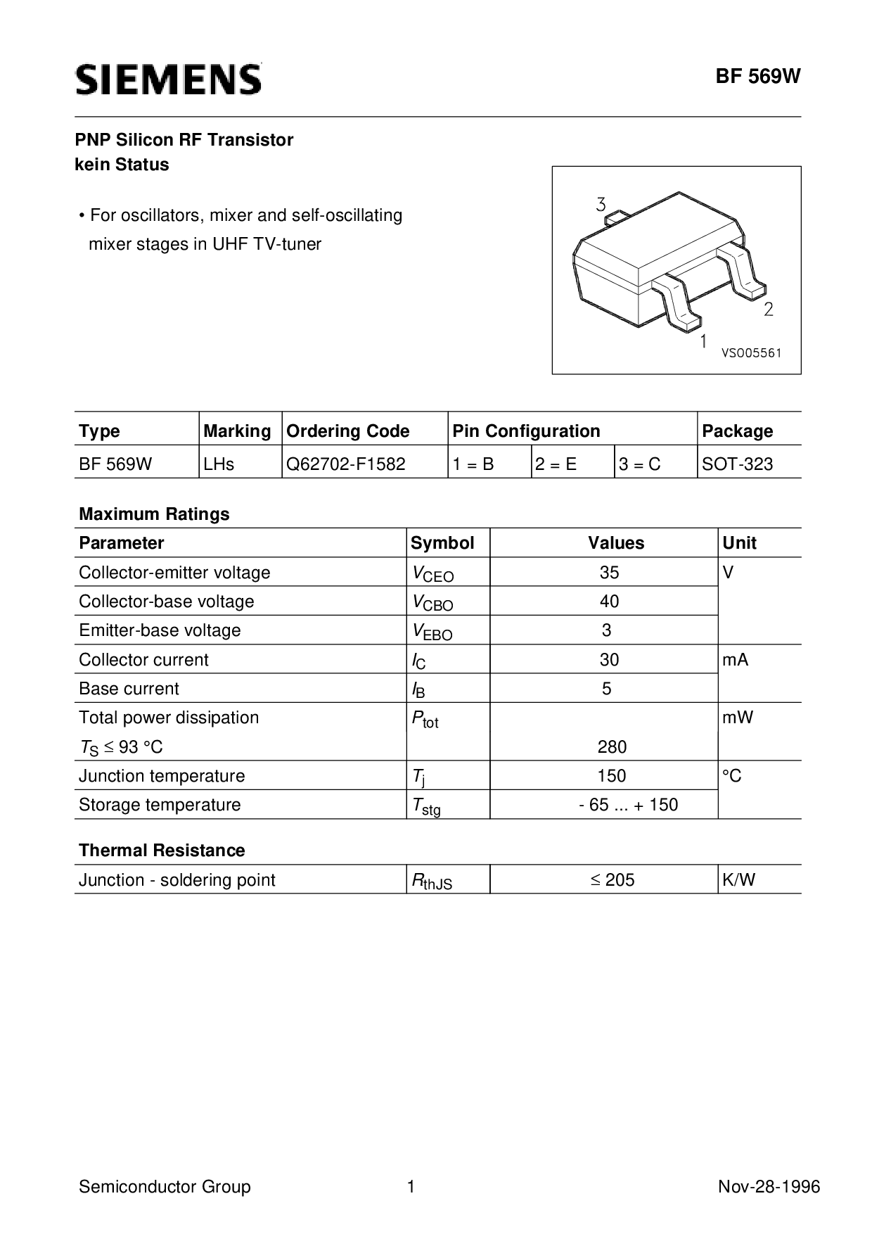 PNP Silicon RF Transistor (For oscillators, mixer and self-oscillating mixer stages in UHF TV-tuner)