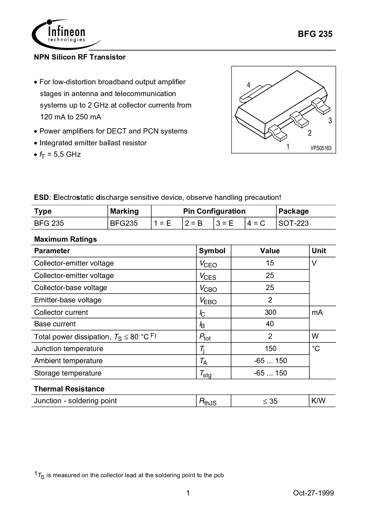 bfg 235 BFG235 1 = e? 2 = b 3 = e? 4 = c sot-223