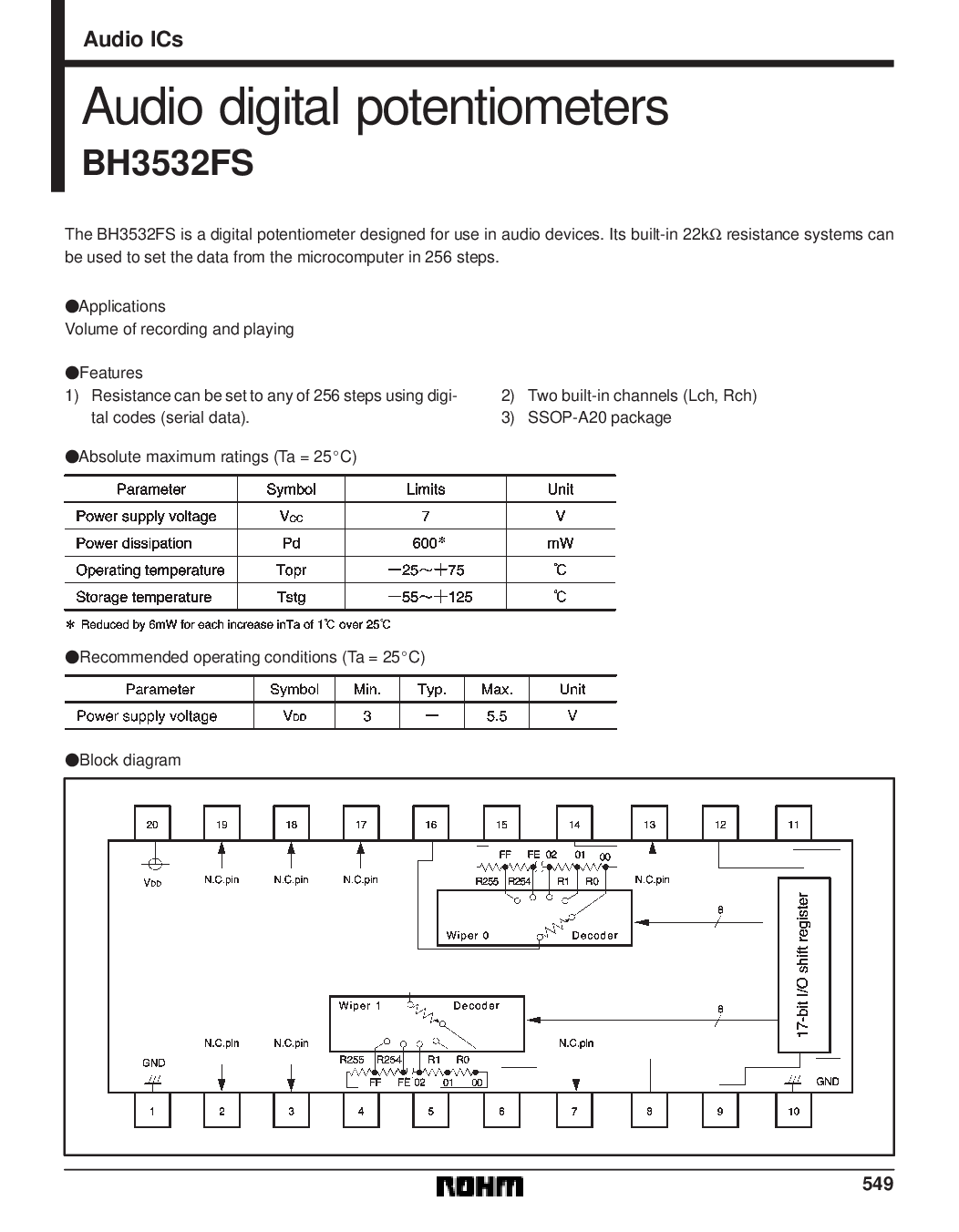 这 bh3532fs 是 一个 数字 电位计 设计 用于 使用 入点 音频 设备. 其 内置 22k