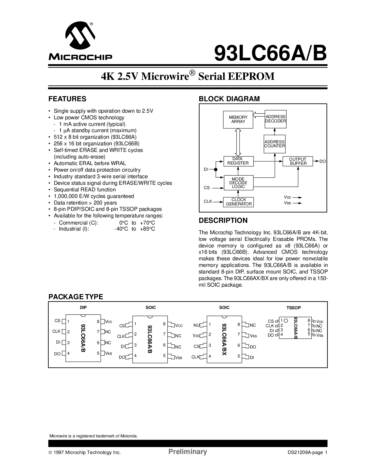 这 微芯片 技术 公司 93lc66a/b 是 4k-有点,