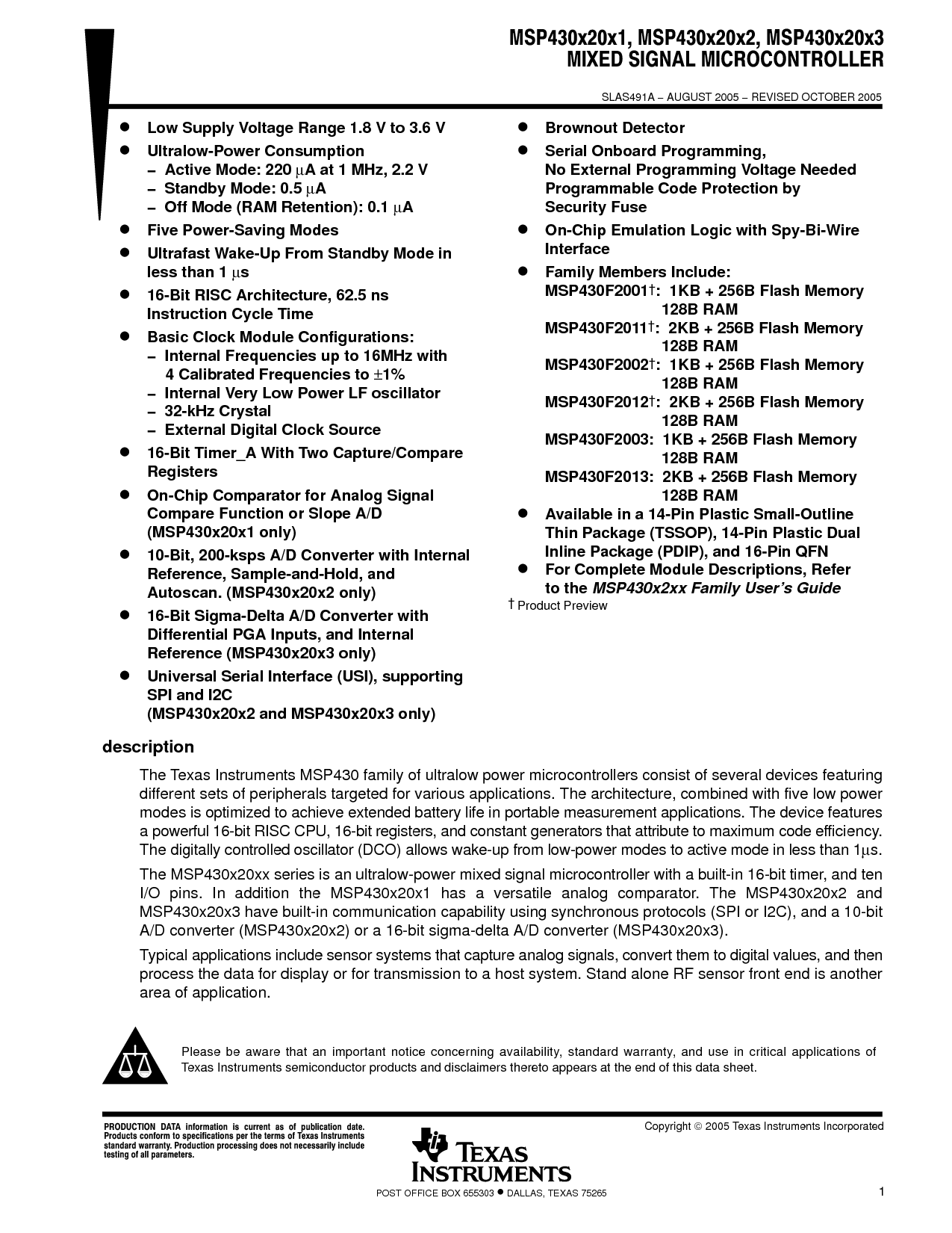 浏览型号MSP430F2013的Datasheet PDF文件第2页
