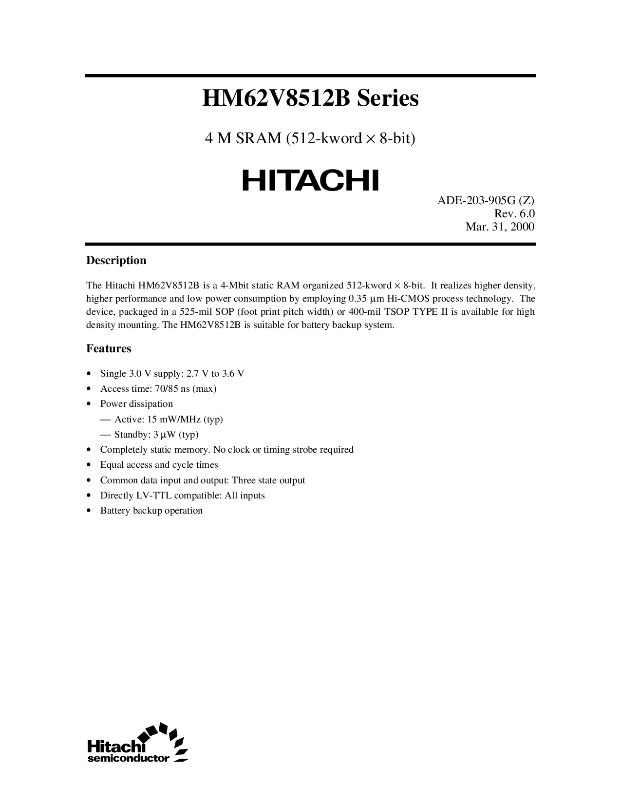 浏览型号HM62V8512BLRR-8UL的Datasheet PDF文件第2页