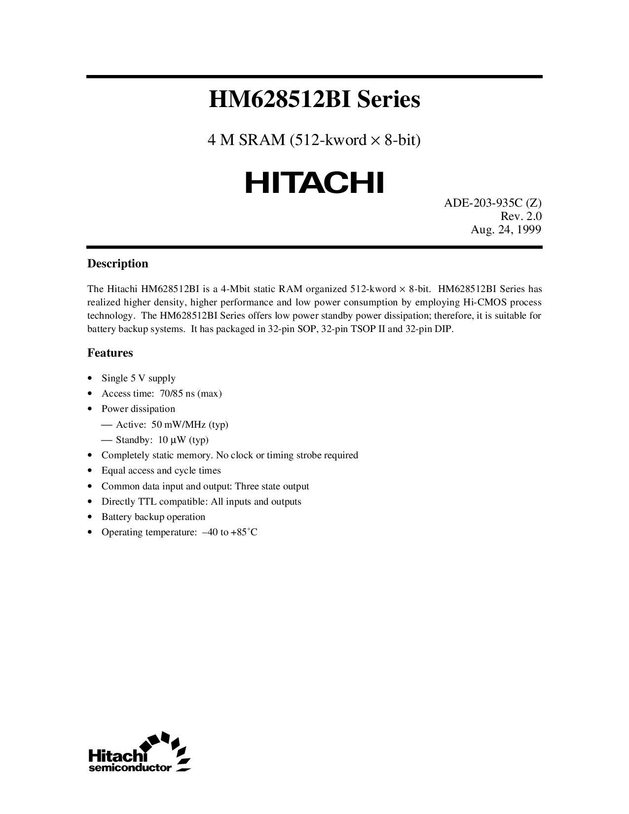 浏览型号HM628512BLRRI-7的Datasheet PDF文件第2页