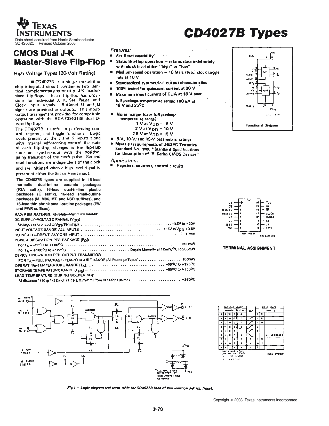 CMOS DUAL J-K MASTER-SLAVER FLIP-FLOP