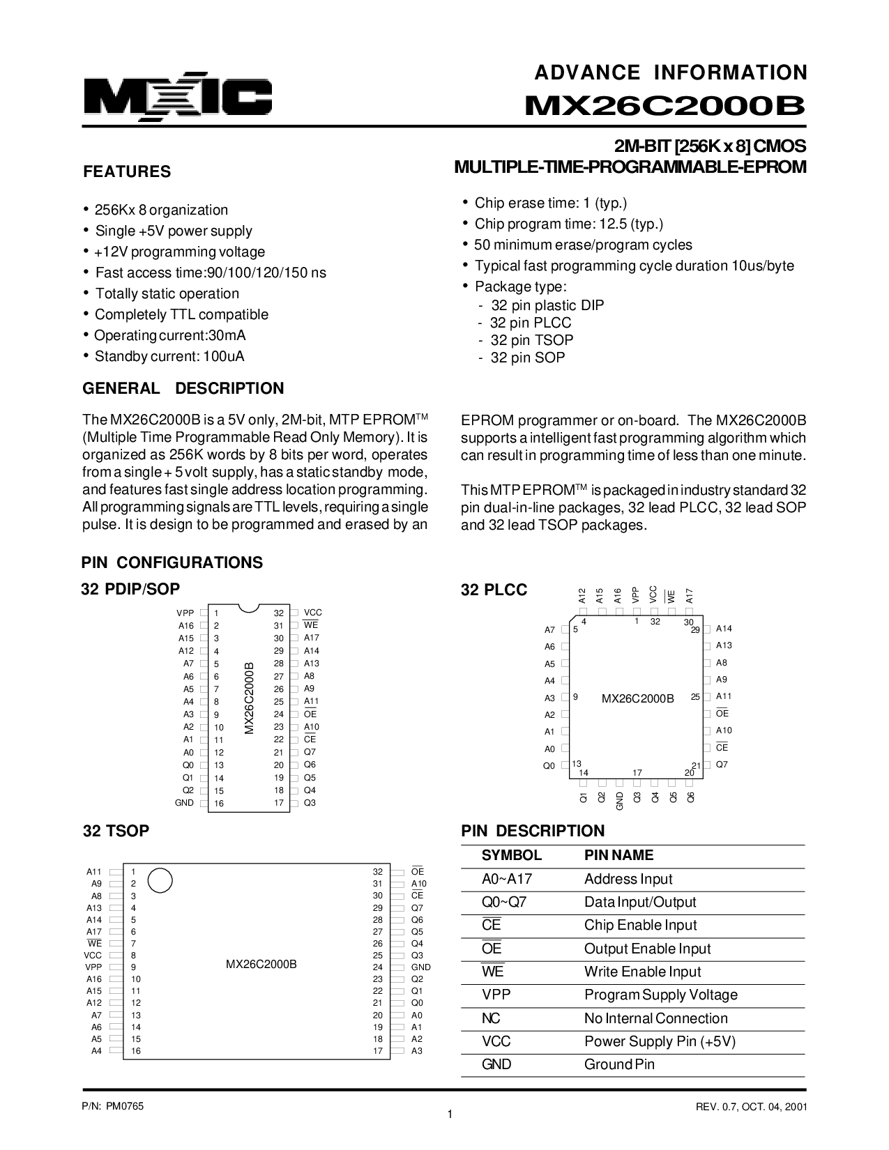 这 mx26c2000b 是 一个 5v 仅, 2m-有点, mtp 非易失存储器