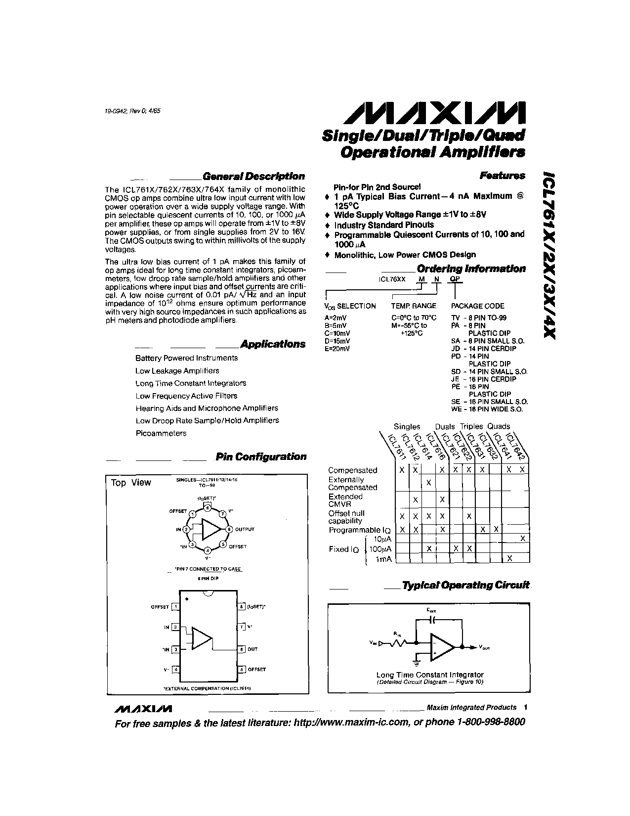 Single/Dual/Triple/Quad Operational Amplifiers