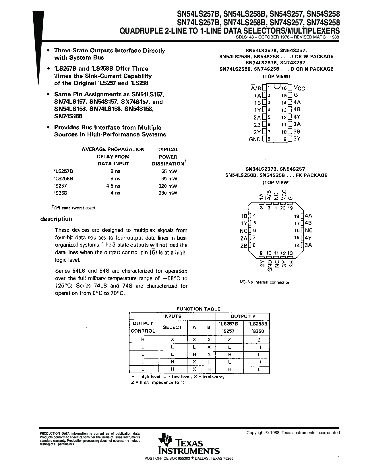 sn74ls257b, sn74ls258b, sn74s257, sn74s258