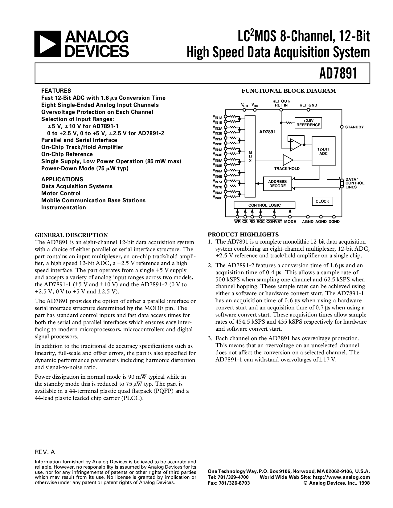 1. 这 ad7891 是 一个 完成 单片 12-有点 数据收购