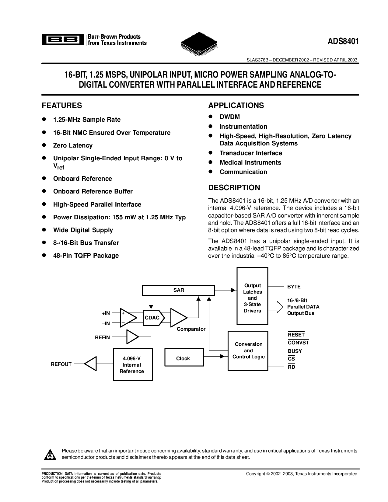 slas376b – 12月 2002 – 修订 april 2003