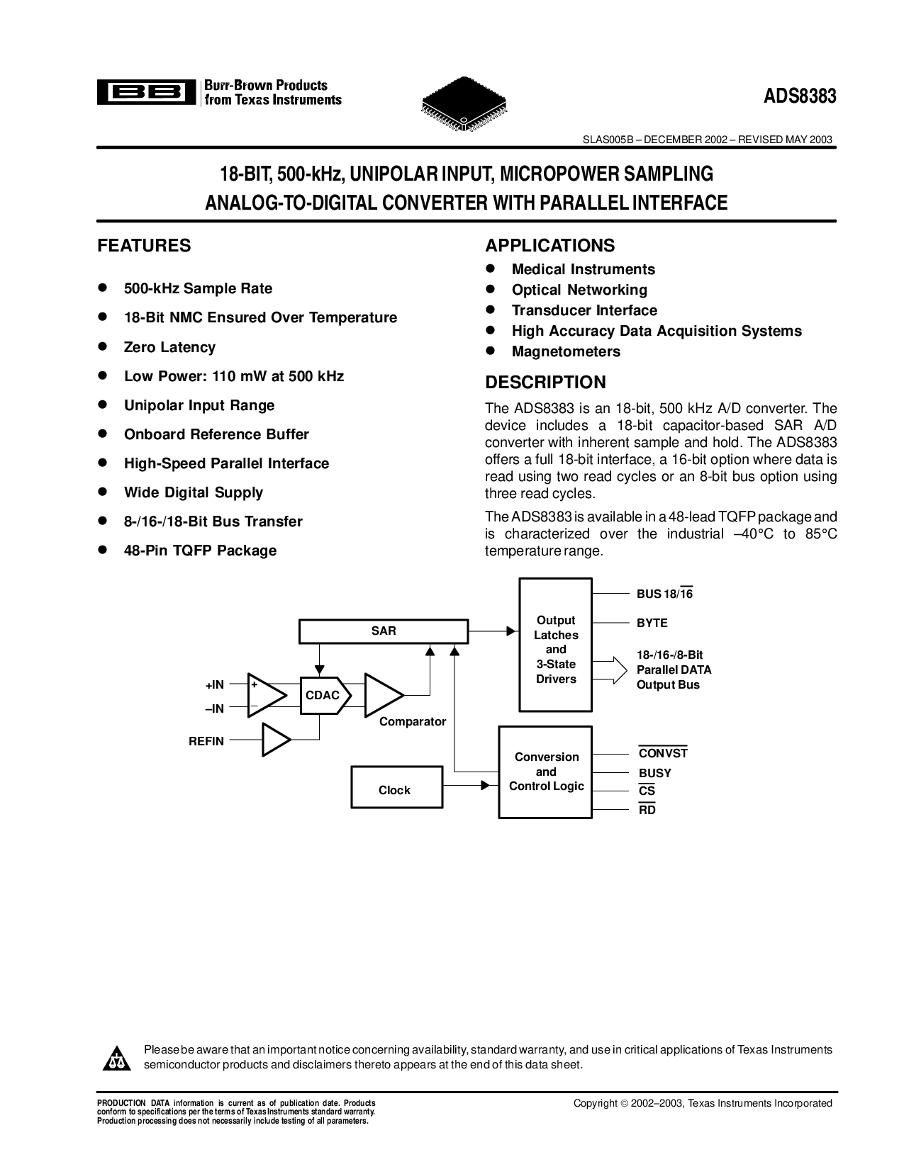这 ads8383 是 一个 18-有点, 500 khz 一个/d 变频器. 这