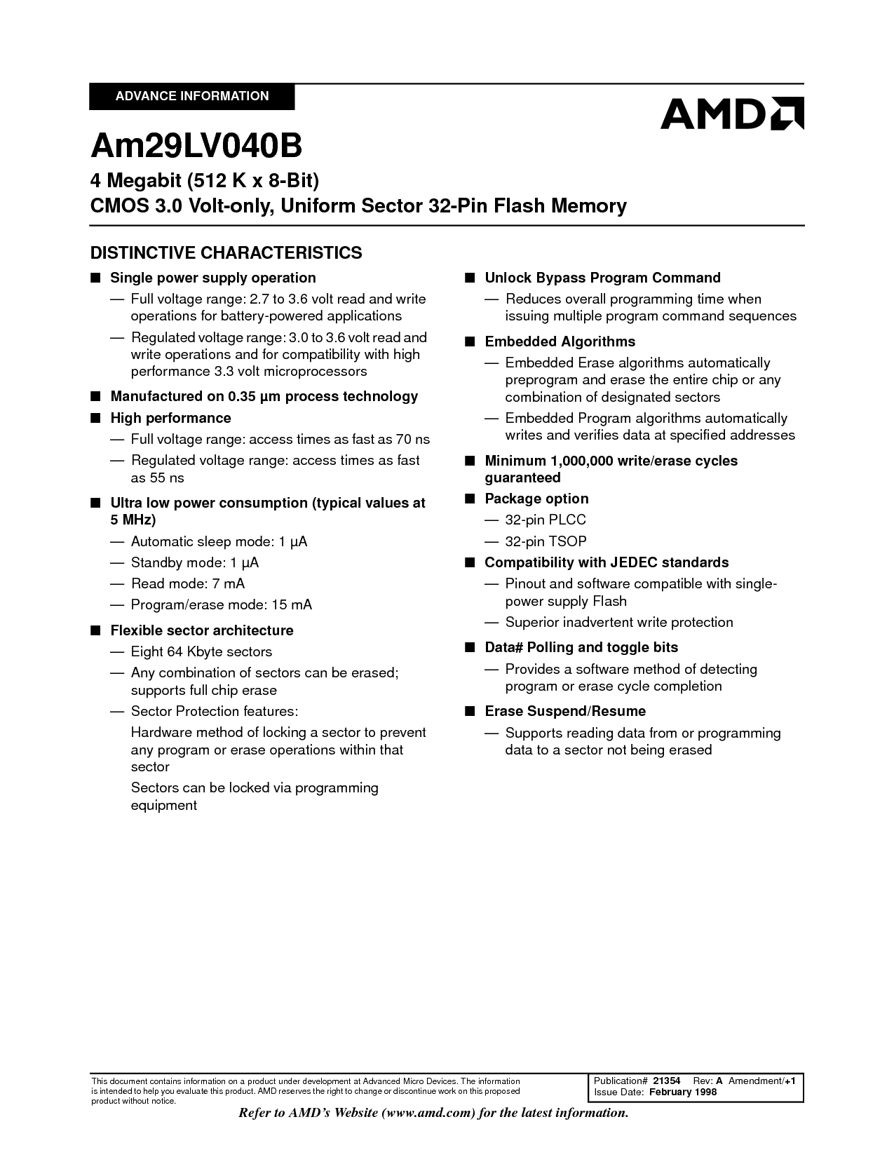 浏览型号Am29LV040BT-70FIB的Datasheet PDF文件第2页