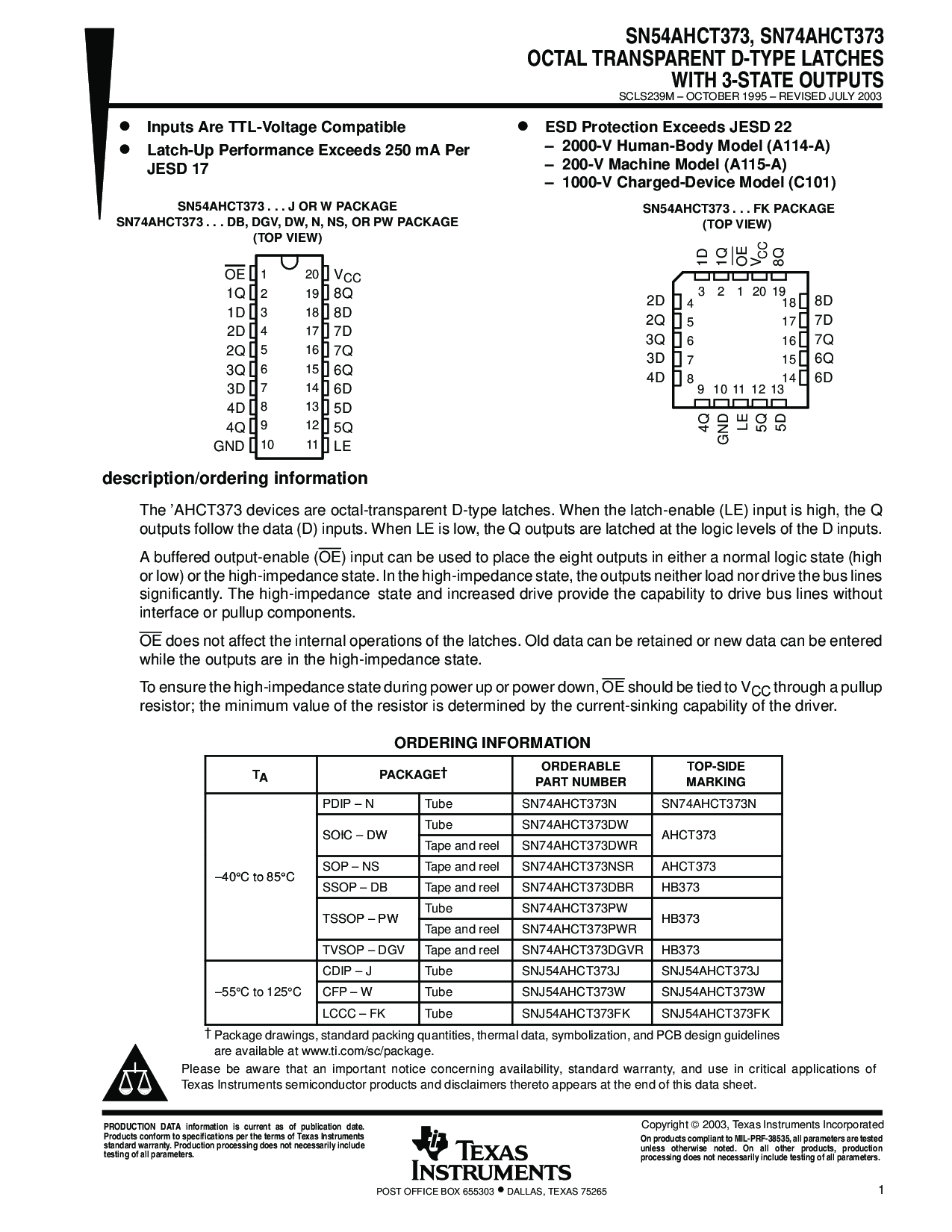 cfp – w 导管 SNJ54AHCT373WSNJ54AHCT373W