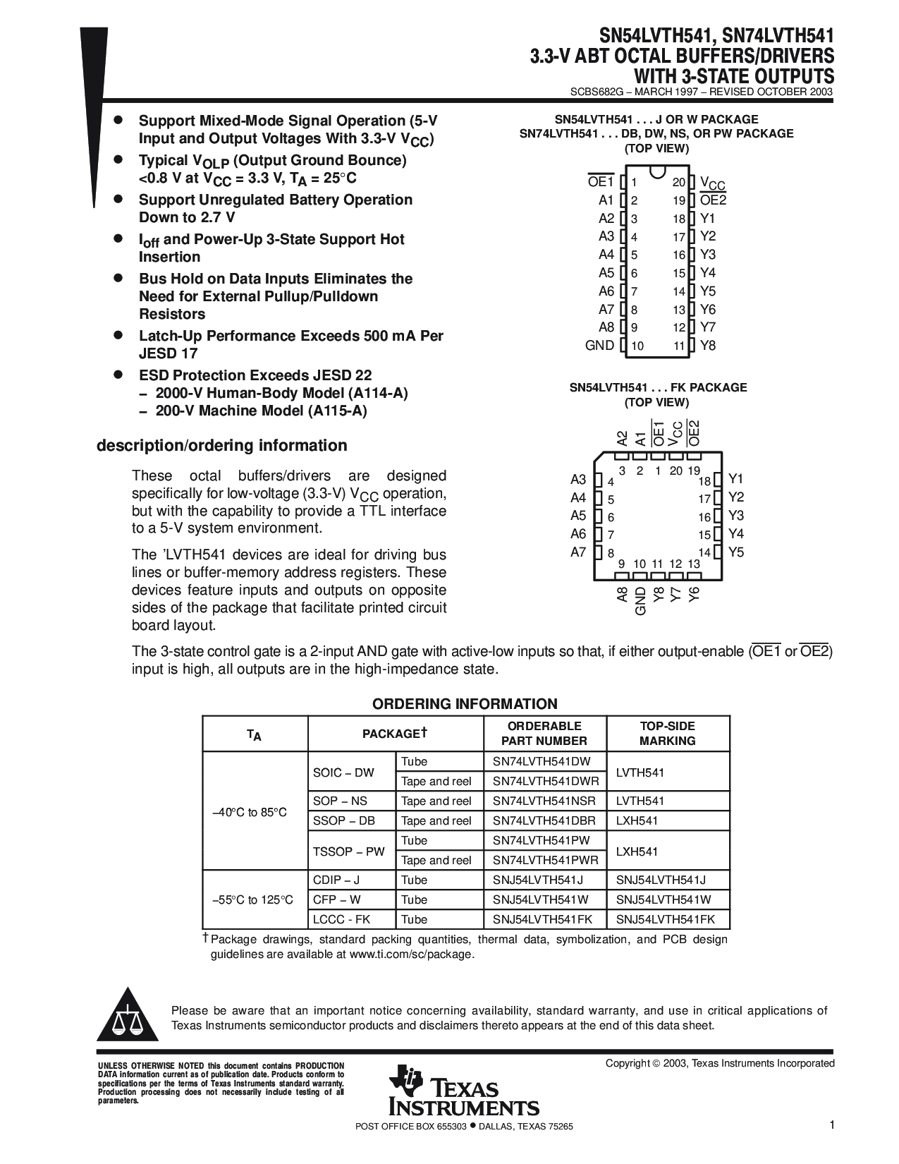 cfp − w 导管 SNJ54LVTH541W SNJ54LVTH541W