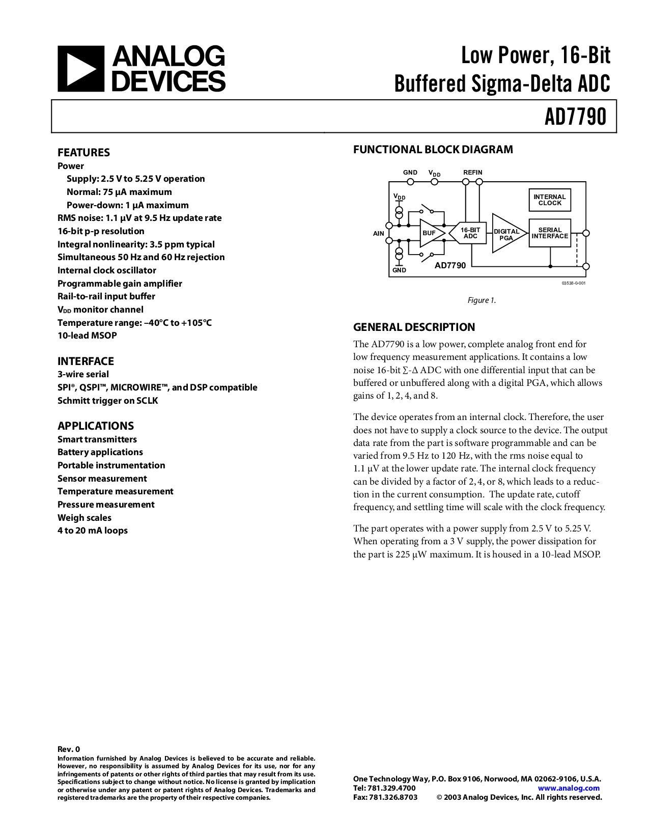 这 ad7790 是 一个 低 电源, 完成 模拟 前 结束 用于