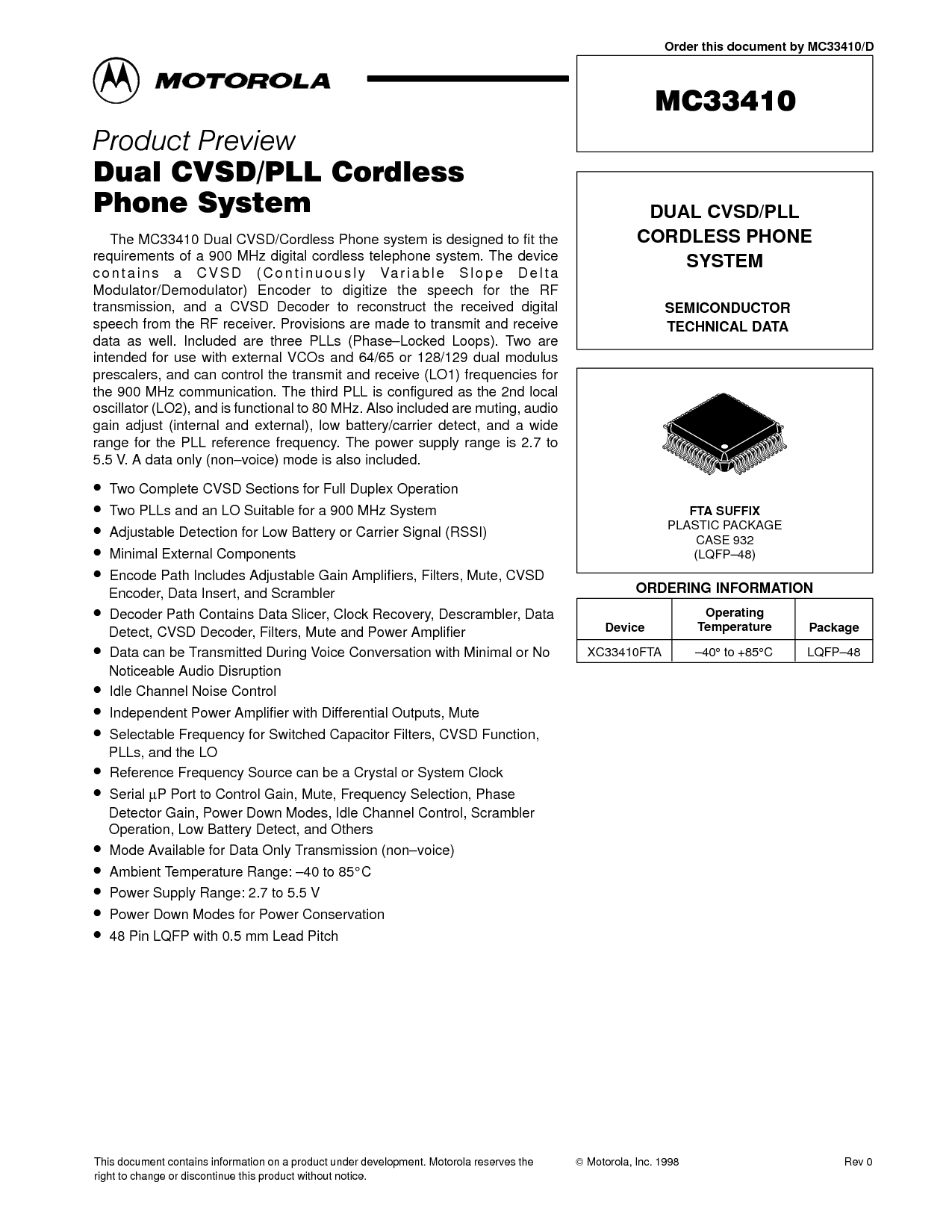 这 mc33410 双 cvsd/无绳 电话 系统 是 设计 至 适合 这