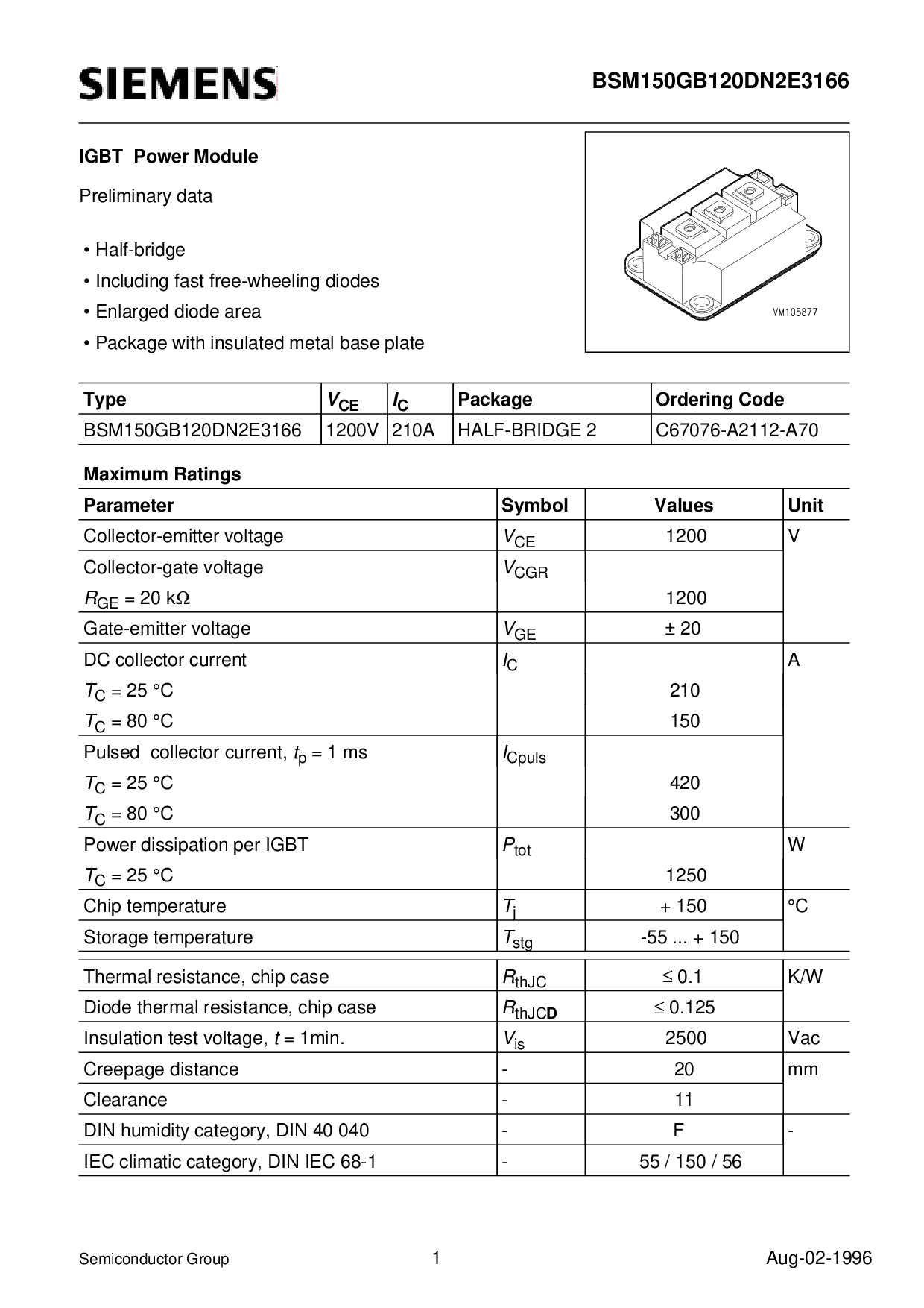BSM150GB120DN2E3166 1200V 210A 半桥 2 c67076-a2112-a70