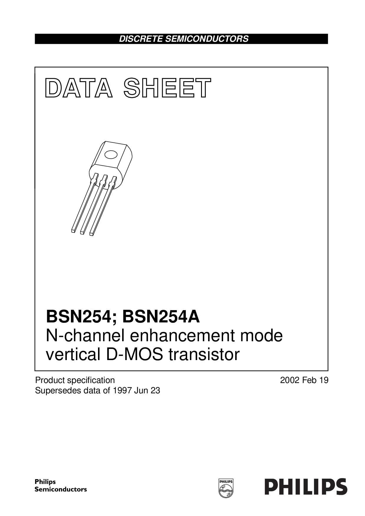 dat一个shEET 产品 Speci 取代 数据 的 1997 六月 23 2002 二月 19 离散 半导体 bsn254; bsn254a n通道 增强功能 模式 垂直 d-mos 晶体管 图书, halfpage M3D186 | |