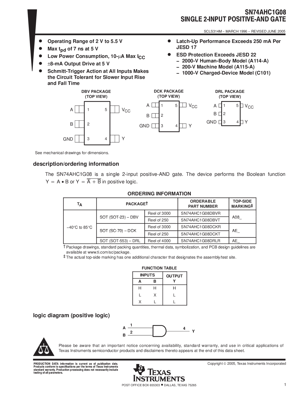 浏览型号SN74AHC1G08DBVRG4的Datasheet PDF文件第2页
