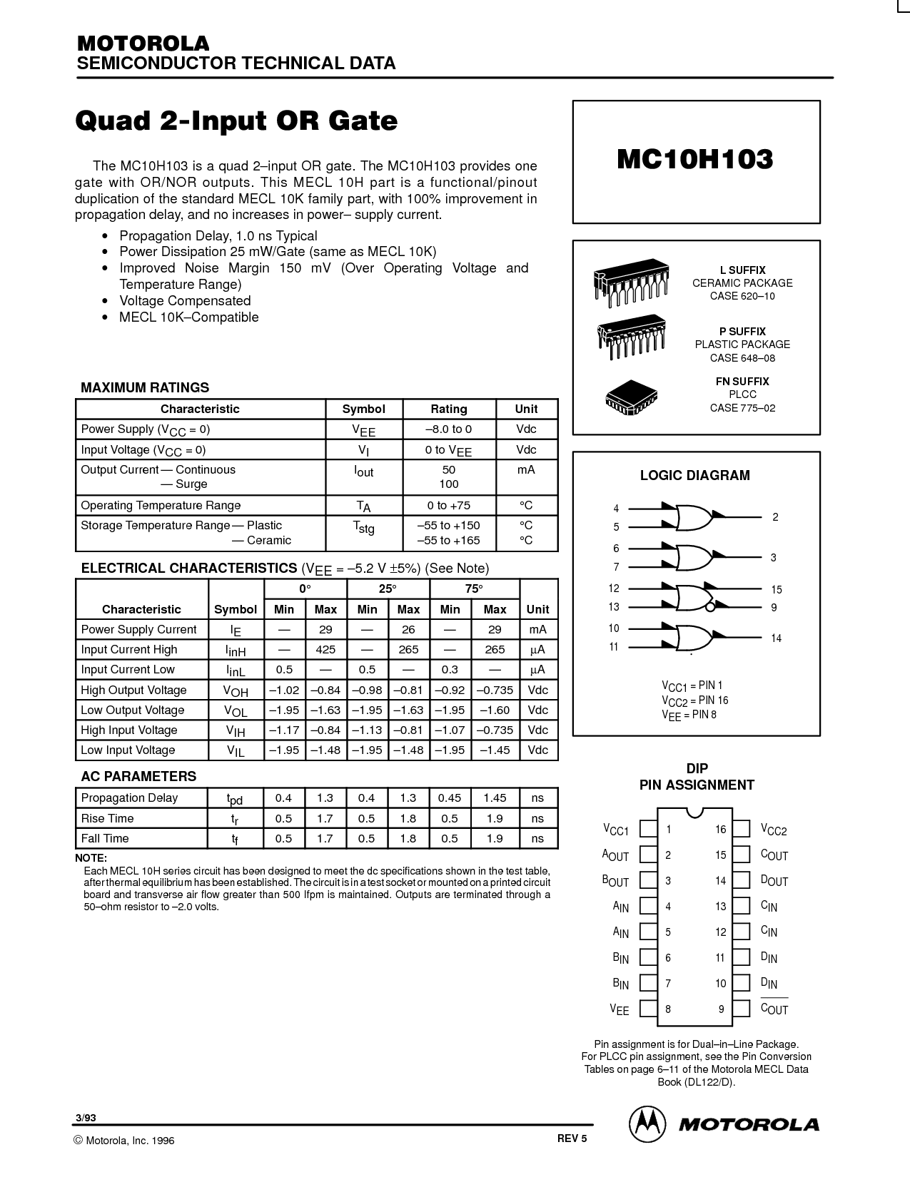 这 mc10h103 是 一个 四边形 2–input 或 闸门. 这 mc10h103 提供 一个