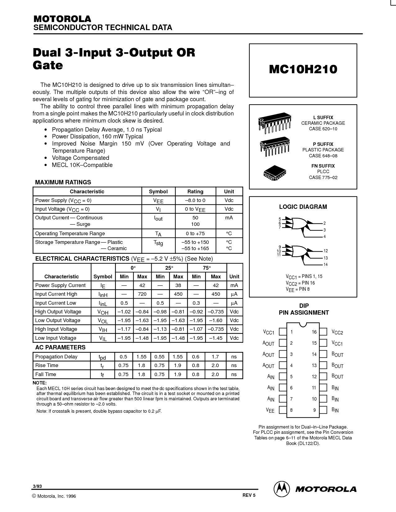 从 一个 单独 点 使 这 mc10h210 特别是 有用的 入点 时钟 分布