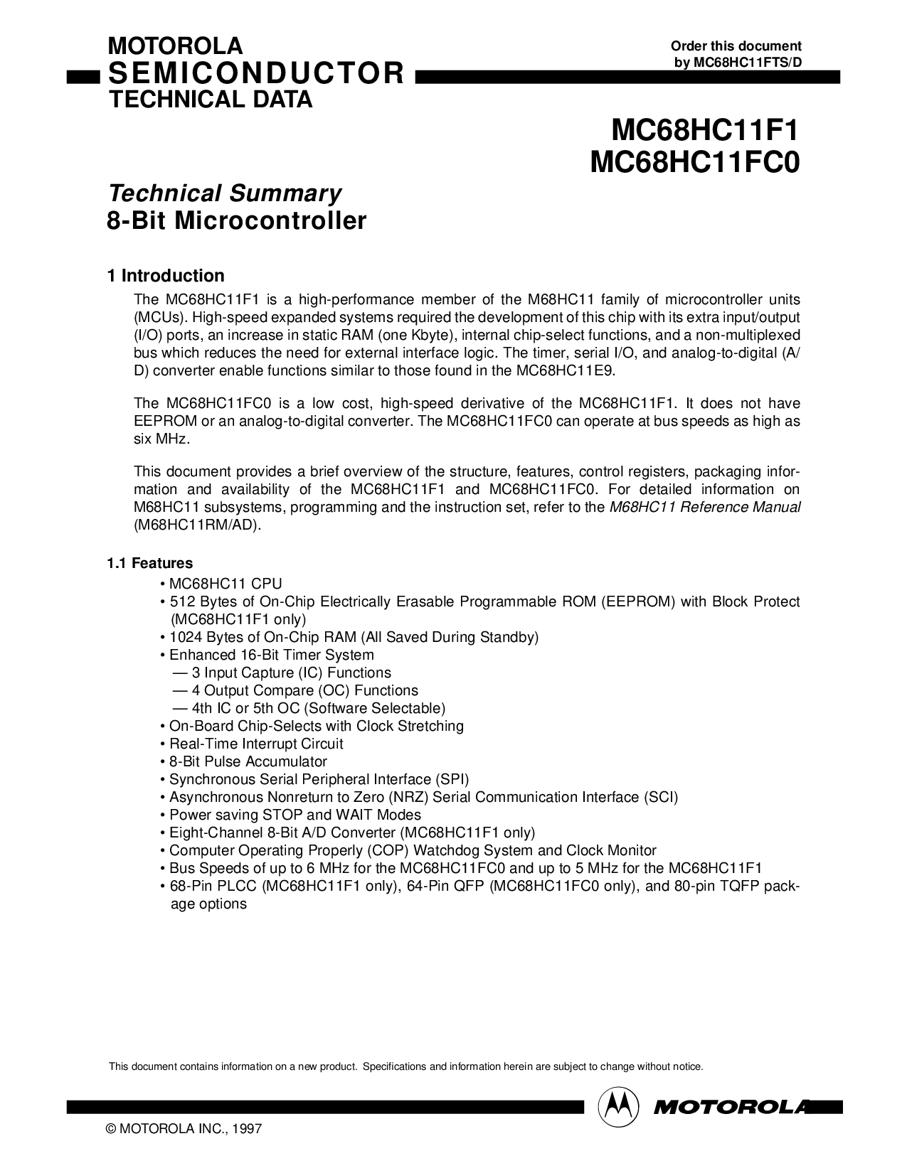 信息 和 可用性 的 这 mc68hc11f1 和 mc68hc11fc0. 用于 详细 信息 开启