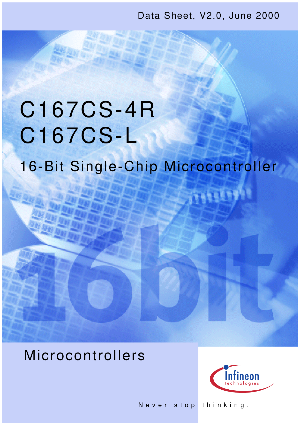 从不 停止 思考. 微控制器 数据 工作表, v2.0, 六月 2000 c167cs-4r c167cs-l 16-有点 单芯片 微控制器 | |