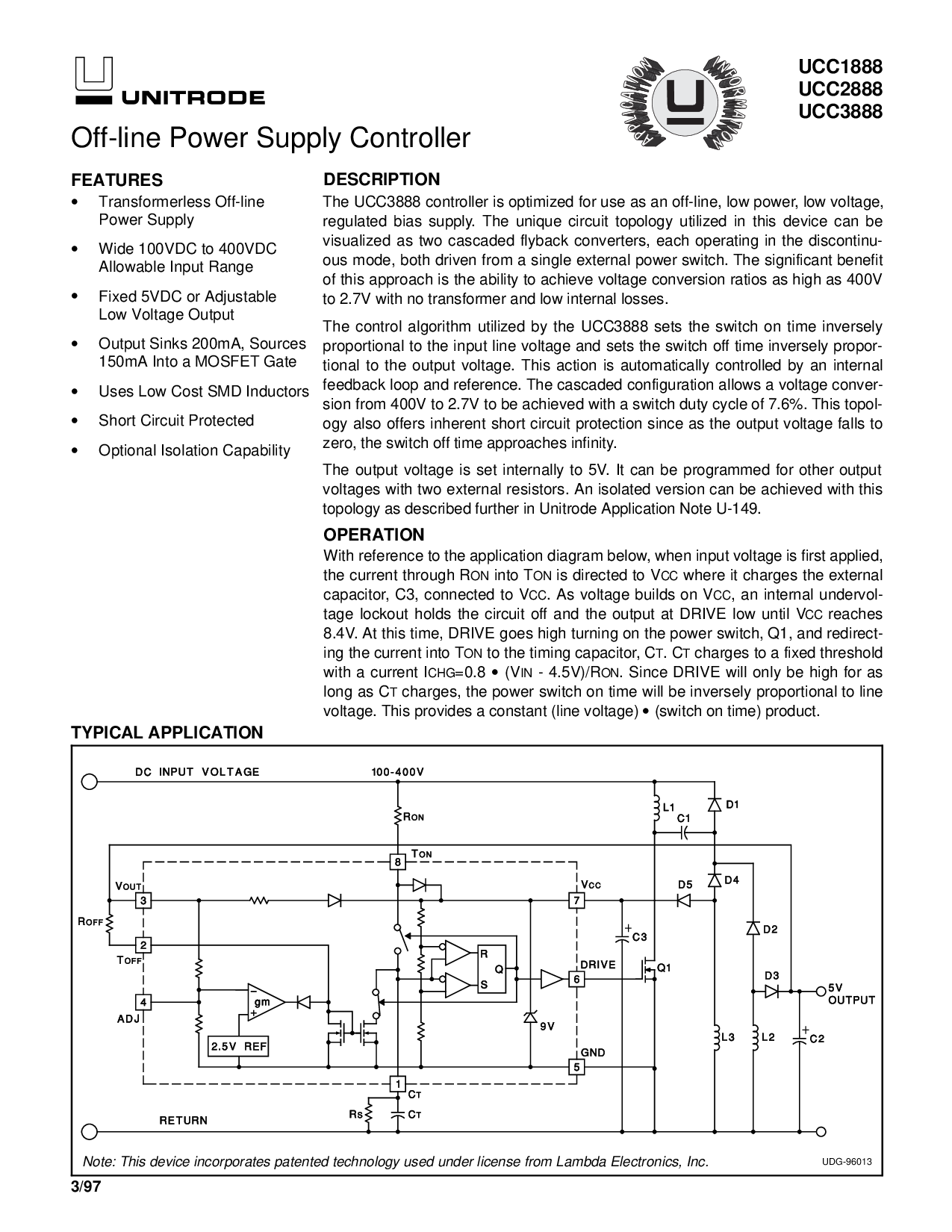 这 ucc3888 控制器 是 优化 用于 使用 作为 一个 关-线, 低 电源, 低 电压,
