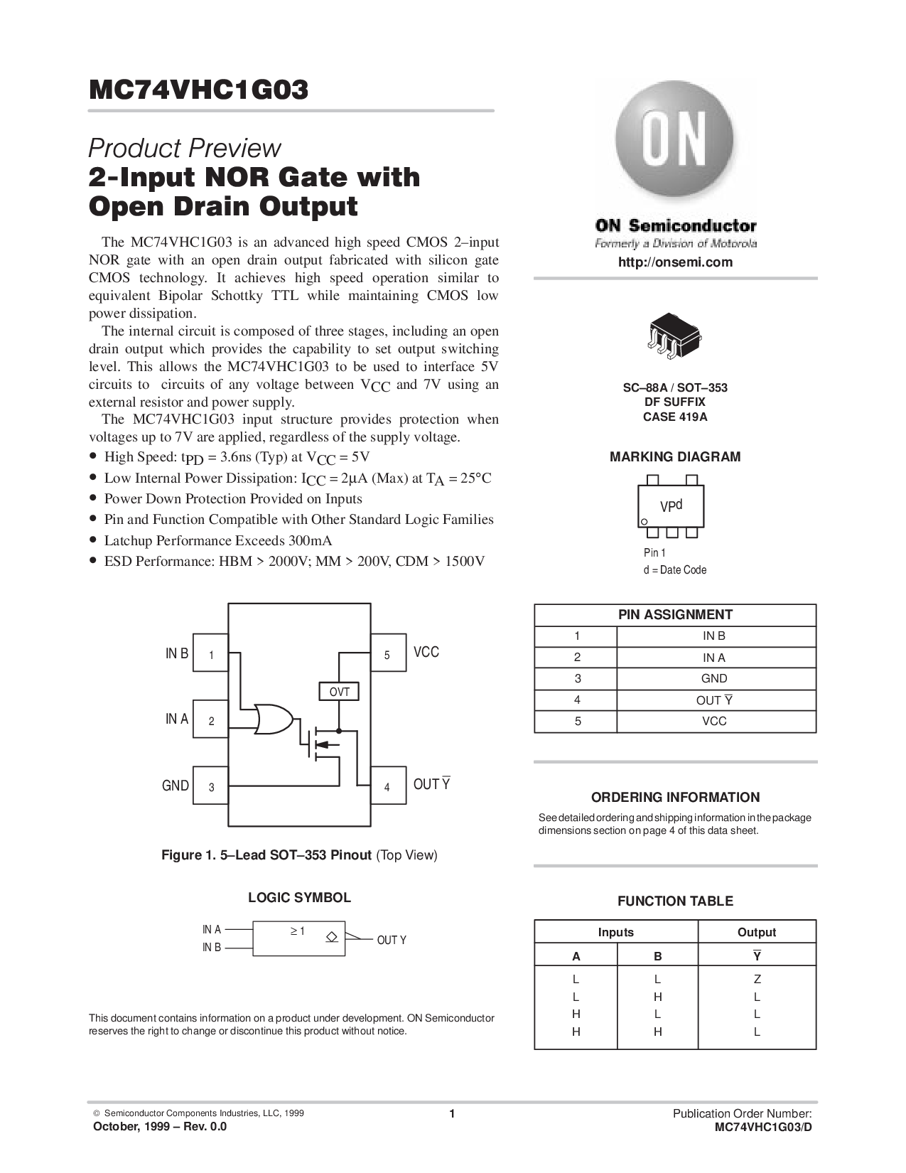 这 mc74vhc1g03 是 一个 高级 高 速度 cmos 2–input
