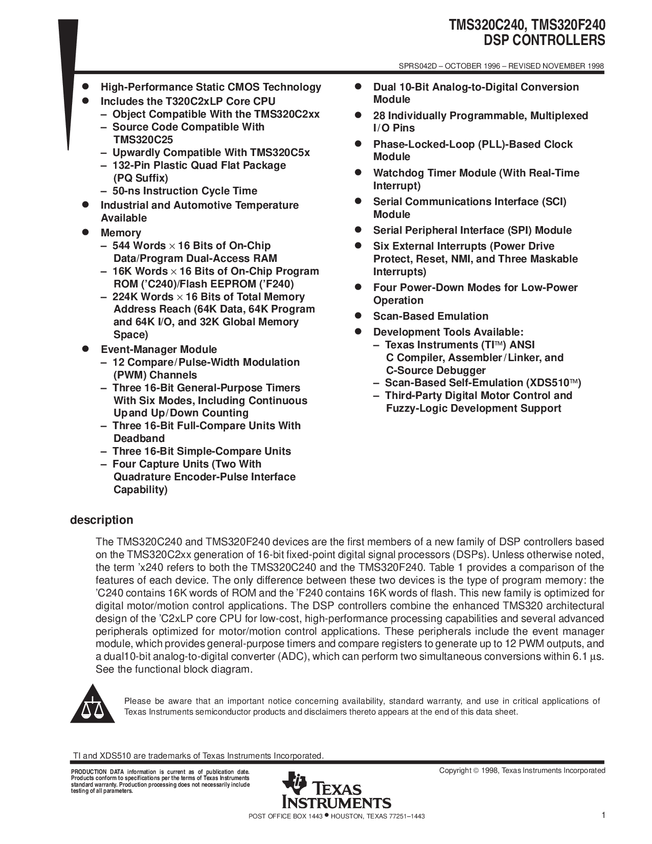 浏览型号TMS320C240的Datasheet PDF文件第4页