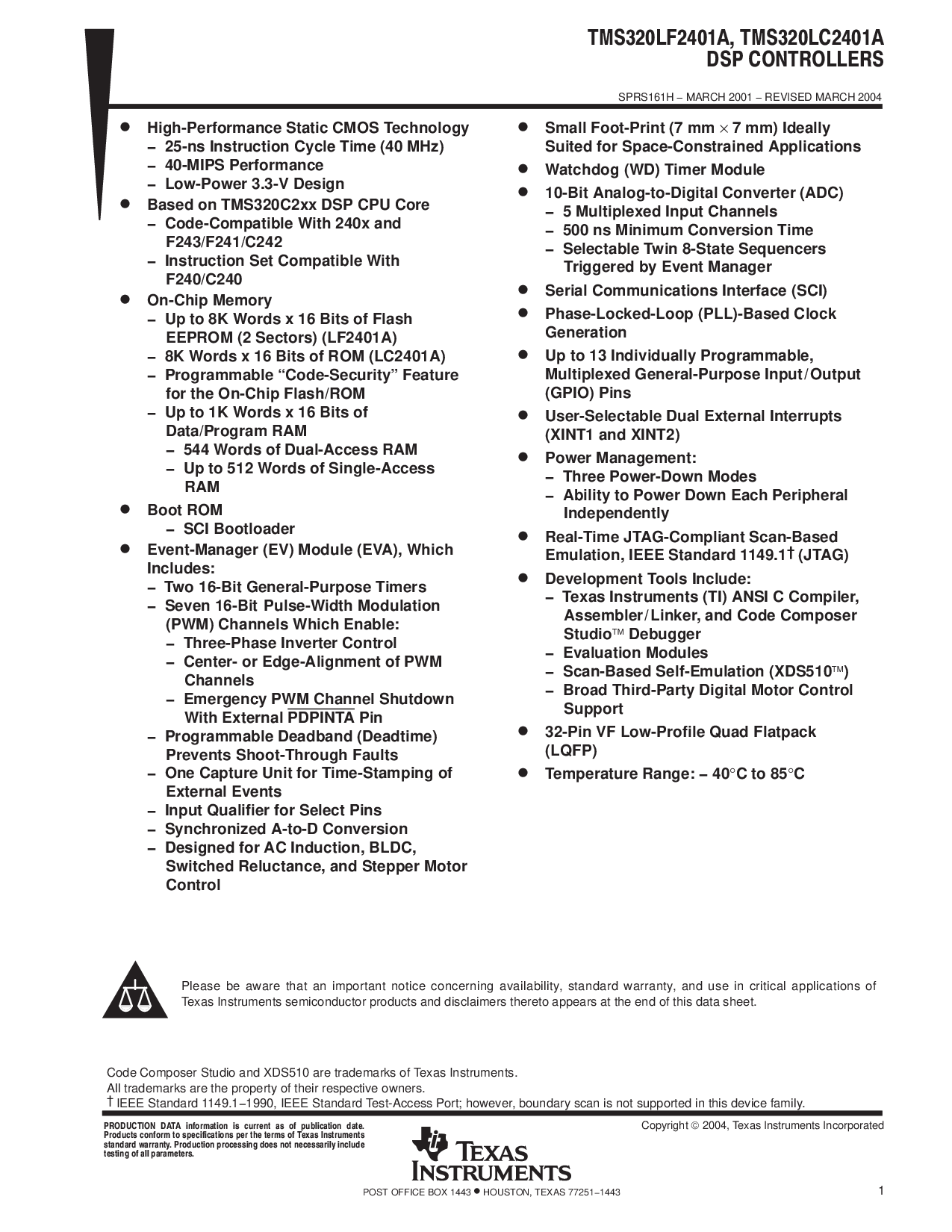 sprs161h −march 2001 − 修订 march 2004