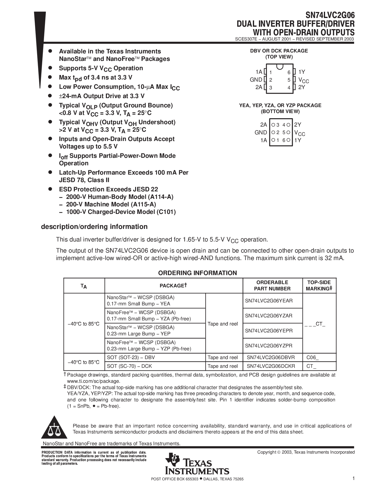 sot (sc-70) − dck 胶带 和 卷轴 SN74LVC2G06DCKR ct_