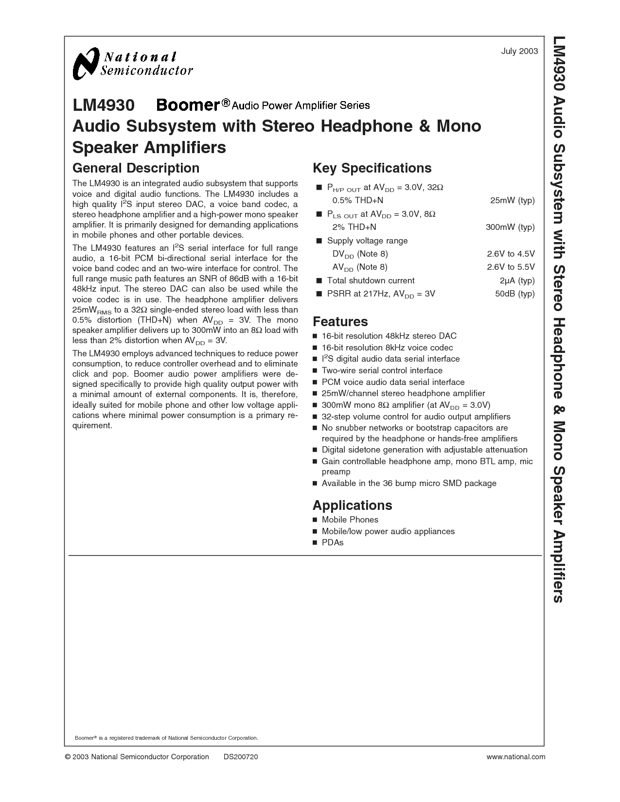 © 2003 国家 半导体 公司 DS200720 www.国家.com