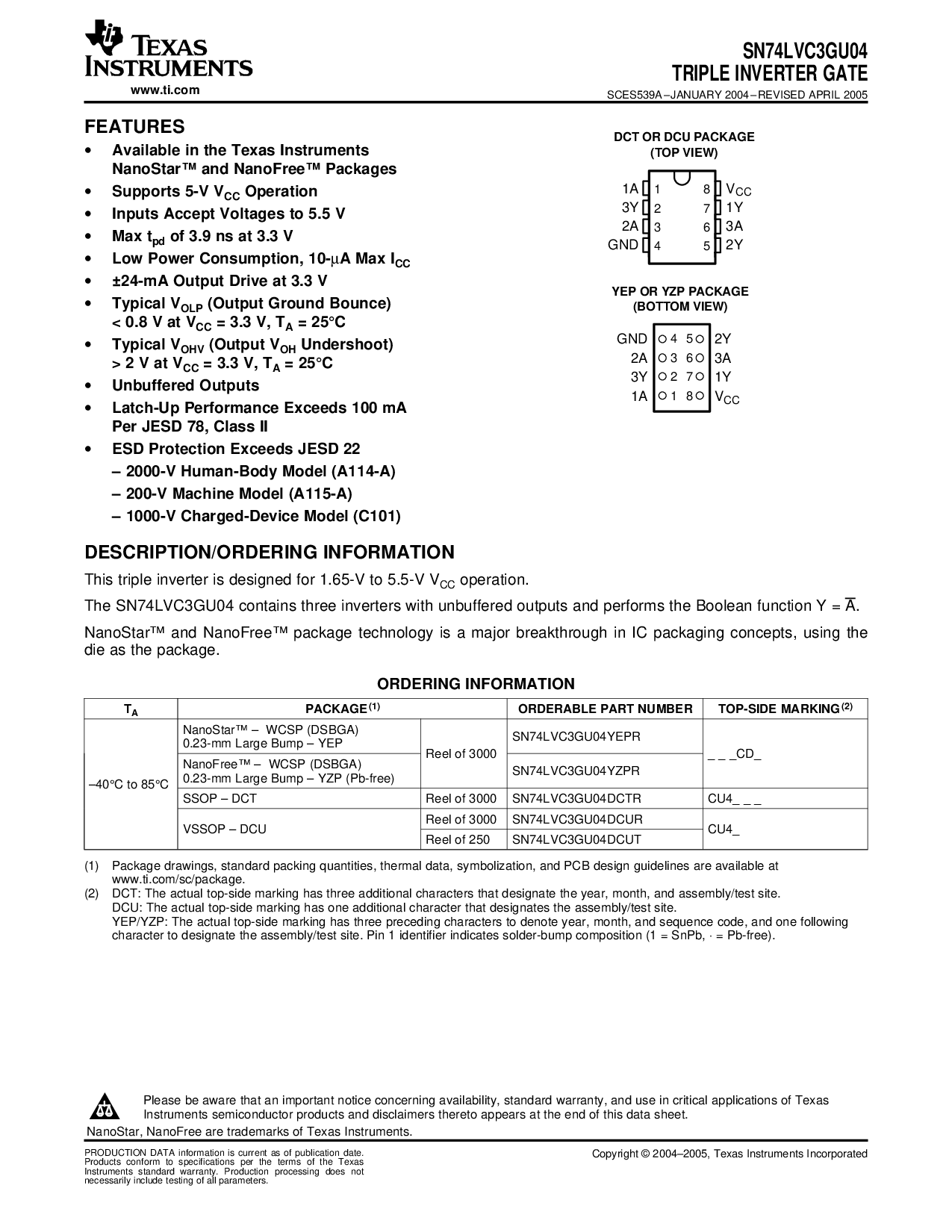 ssop–dctreelof3000sn74lvc3gu04dctrcu4___